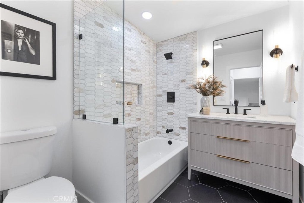 Thoughtfully renovated 2-bedroom, 2-bathroom single family retreat, nestled in the exclusive Beverly Hills Post Office neighborhood, moments from Beverly Hills. Step inside to enjoy pitched ceilings, rich hardwood floors, and sun-drenched living spaces that flow to a private backyard oasis. Designed for both entertaining and everyday living, the open-concept layout includes a chef's kitchen with stainless steel appliances, quartz countertops, and sleek cabinetry. The primary suite is a true sanctuary, complete with a lux en-suite bathroom featuring dual sinks and shower. The second bedroom and bathroom are equally well-appointed, perfect for guests, a nursery and an additional open loft adds even more versatility for a stylish home office. Out back, enjoy tranquil canyon vibes and lush greenery. The finished 2-car garage can be used as a garage or home gym. This home offers access to top-tier public schools and unmatched proximity to Beverly Hills' finest restaurants, shops, and amenities. This is California living at its best: stylish, serene, and perfectly situated. Don't miss this opportunity!