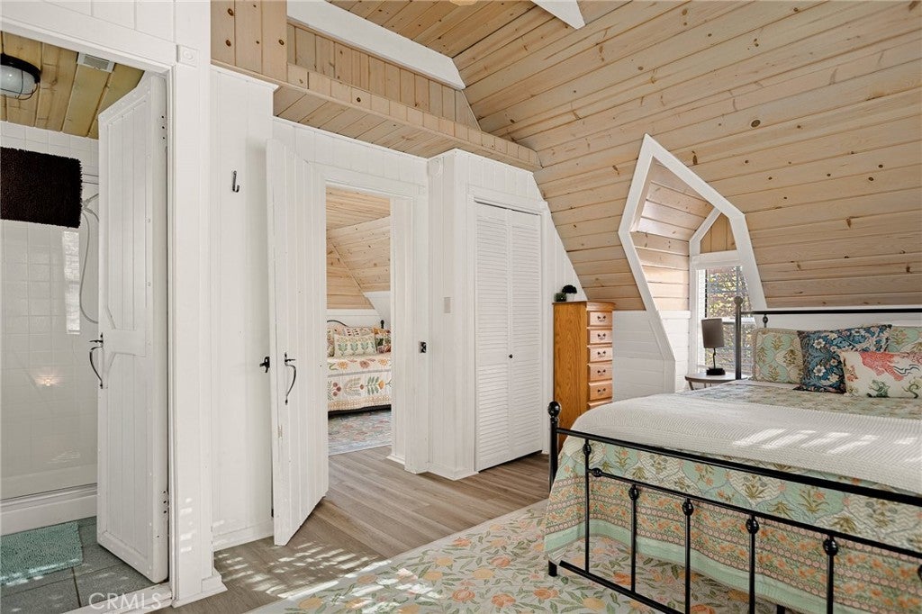 It had me from “hello.” A charming vintage cabin nestled among mountain foliage, adorned with breathtaking stonework and offered with full lake rights and optional turnkey appointments. The shingled façade immediately catches the eye, and within, a gorgeous fireplace takes center stage—no disappointment there. Beamed ceilings, wood-paneled walls, and tiled kitchen and baths create a warm, nostalgic ambiance throughout. Upstairs, you’ll find elevated ceilings and quaint dormers that frame the paned windows, flooding this storybook cottage with natural light. Don't worry if this home steals your whole heart, becuase it has a generac to keep it charged... ALL NIGHT LONG! Just a stone’s throw (when’s the last time you heard that?) from Lake Arrowhead Village—the mountain’s lakefront hub for shopping, dining, and entertainment—this cabin offers the best of both charm and convenience with its lake oriented location. A true four-season getaway, embraced by a picket-style fence and inviting patio approach, it will have you at “hello”... and reluctant to ever say “goodbye.” Low in inventory but rich in romance and nostalgia—this one is for the dreamers.