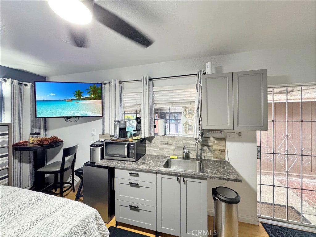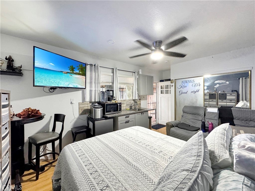 Welcome to your ideal multigenerational living opportunity! This wonderful corner-lot property offers two separate living spaces, perfect for those seeking togetherness while maintaining privacy. The main house features three bedrooms with a possible 4th bedroom, two bathrooms, a spacious living and dining area, and a large kitchen ideal for gathering and entertaining. There’s also a bonus room currently used as a home gym, providing plenty of versatility for your lifestyle needs. The second structure was once a garage but has been thoughtfully converted into a beautiful studio with a modern upgraded bathroom and a convenient kitchenette — perfect for multigenerational living, guest accommodations, or a private workspace. A wrought iron gate offers separate access to the studio without disturbing the main residence. Enjoy the outdoors with a large covered patio, perfect for relaxing or entertaining in shade and privacy. The fenced front yard enhances security and curb appeal, while mature fruit trees, lush landscaping, and two large storage sheds add both charm and functionality. With ample street parking and easy access from its corner location, this property combines comfort, flexibility, and privacy in one exceptional package.