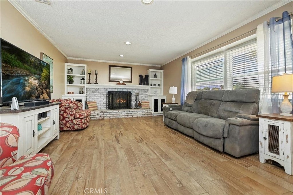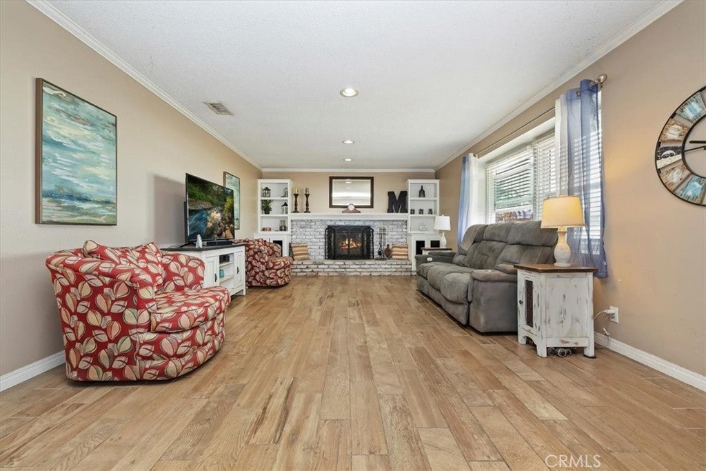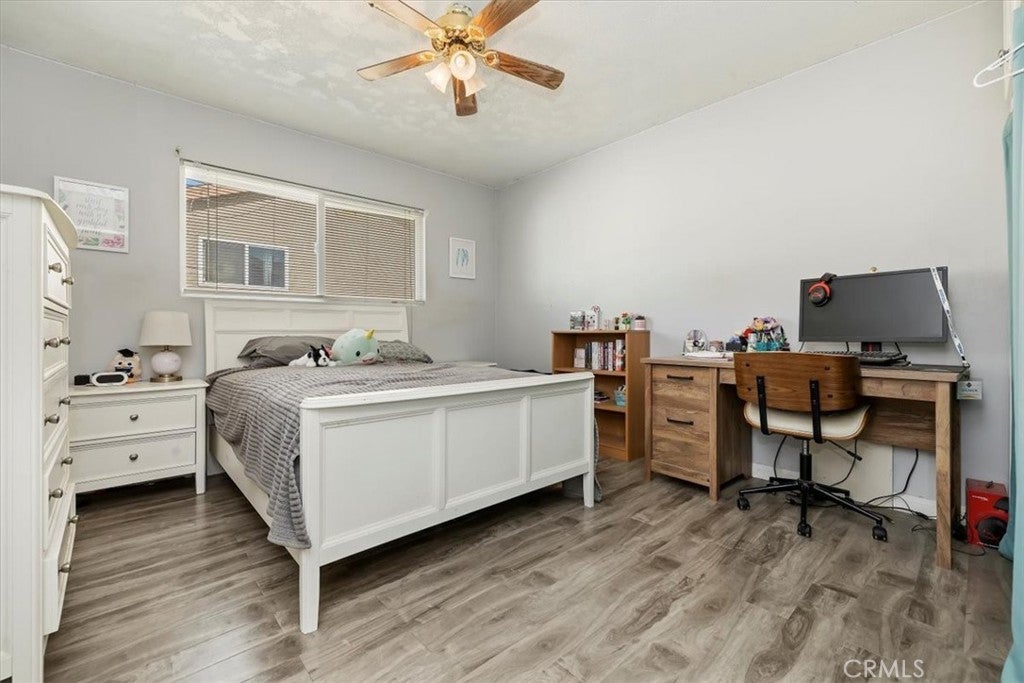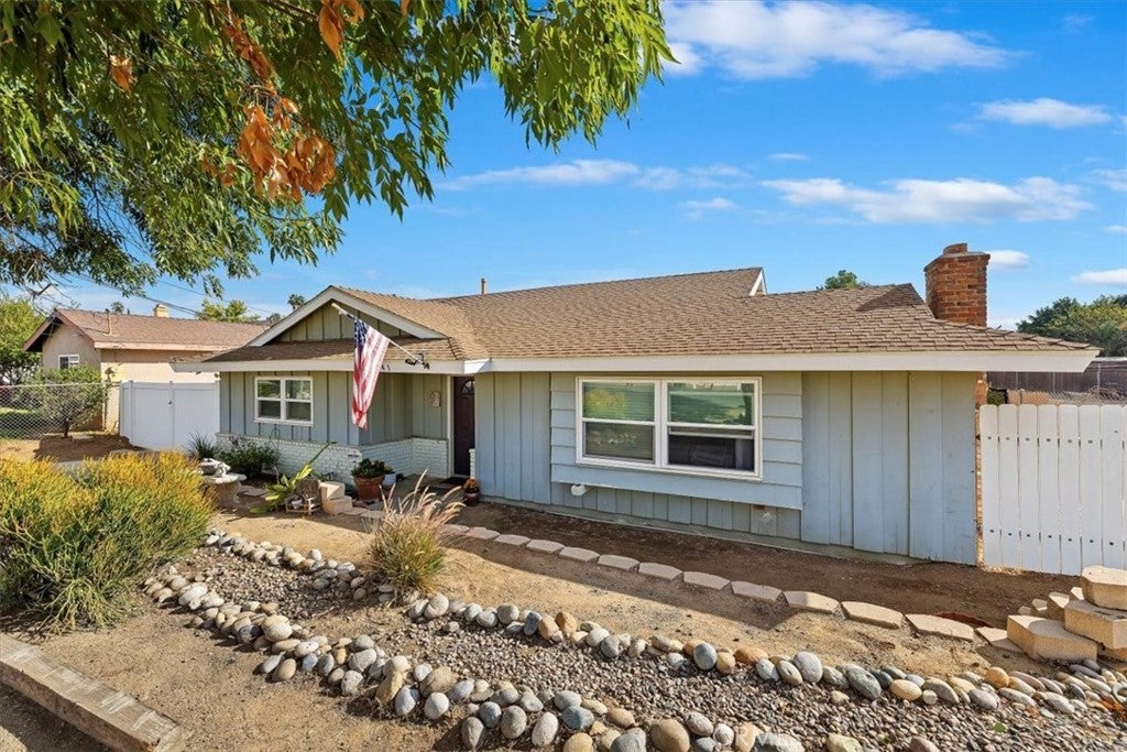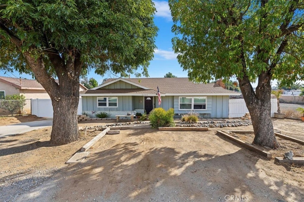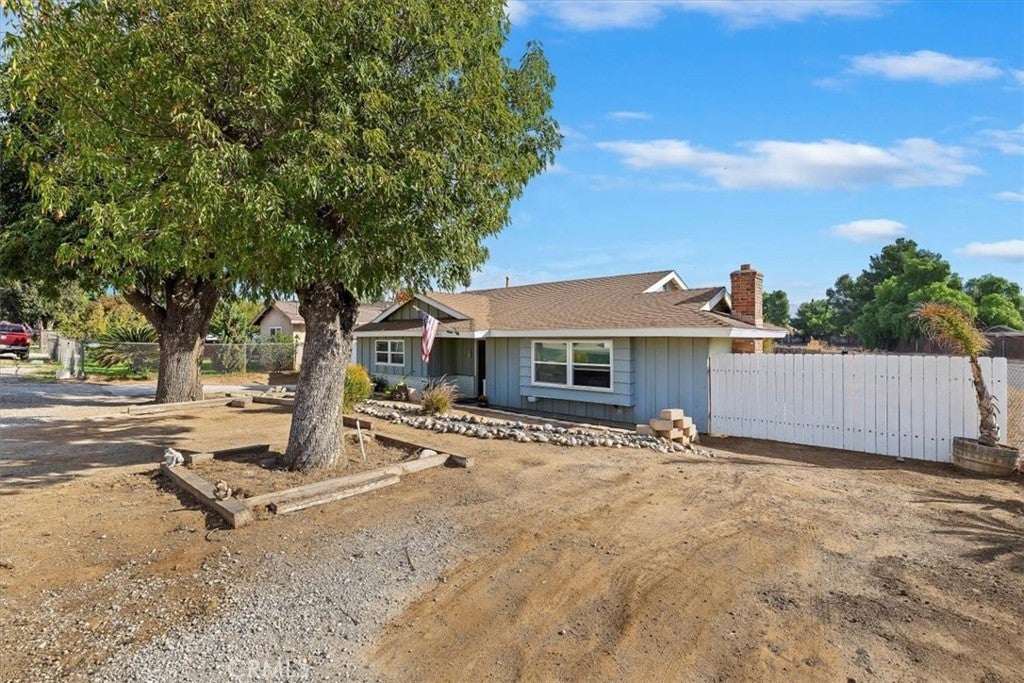 New Price! Single story with Workshop and horse property. This spacious property sits on a 21,344 sq. ft. lot and includes a 1,260 sq. ft. stick-built workshop, a detached garage, and a beautifully upgraded single-family home. The home offers 1,589 sq. ft. of living space with 3 bedrooms, 2 bathrooms, and an office. The layout is functional and inviting, featuring a comfortable family room with a cozy brick fireplace that welcomes you as you enter. The upgraded kitchen includes granite countertops, ample cabinetry, and a dining area conveniently located adjacent to the kitchen. The primary bedroom is oversized and features two closets; this space was previously the attached garage and has been tastefully converted for added comfort. The hall bathroom offers a tub/shower combination and updated vanity, while the primary bathroom features a large marble-tiled walk-in shower and modern finishes. The home has upgraded windows throughout, with tile flooring in the main living areas and laminate flooring in the bedrooms. The laundry area has been relocated to a closet within the office for convenience. Enjoy outdoor living under the Alumawood covered patio, perfect for relaxing or entertaining. Behind the home, you’ll find a detached garage and a spacious 1,260 sq. ft. workshop with two roll-up doors—one providing access to the back of the property. The WORKSHOP is ideal for car enthusiasts, desert toys, or a home-based business. The termite completion has recently been done on the house. The rear portion of the lot offers space for horses, animals, a garden, or fruit trees—providing endless possibilities for country living with city convenience. Additional features include extra gated parking near the detached garage and plenty of room for RV or trailer storage. This property truly has it all—space, versatility, and potential!