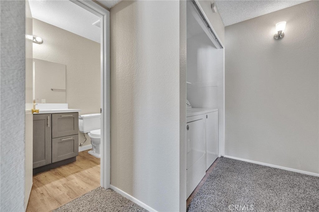AS OF November 1, 2025, this beautiful corner unit has been updated with new interior paint, new carpet upstairs, new bedroom closet doors, new bathroom lighting, 2 car garage with new interior paint and new man door. This property has only 1 shared wall and lots of windows for a bright atmosphere. Lower level open concept, living room with fireplace, half bath for guests, dining area, updated kitchen includes stove, microwave and refrigerator all with newer vinyl flooring. Plus a good size private patio area for entertaining. Upstairs has 3 good size bedrooms, 2 full baths and laundry area that includes a washer and dryer. Plumbing upgraded earlier this year. It is conveniently located near the pool for tons of family fun! This quite community features well maintained landscape, pool and spa. Close to schools, shopping and freeways. Low HOA and no Mello Roos Tax.