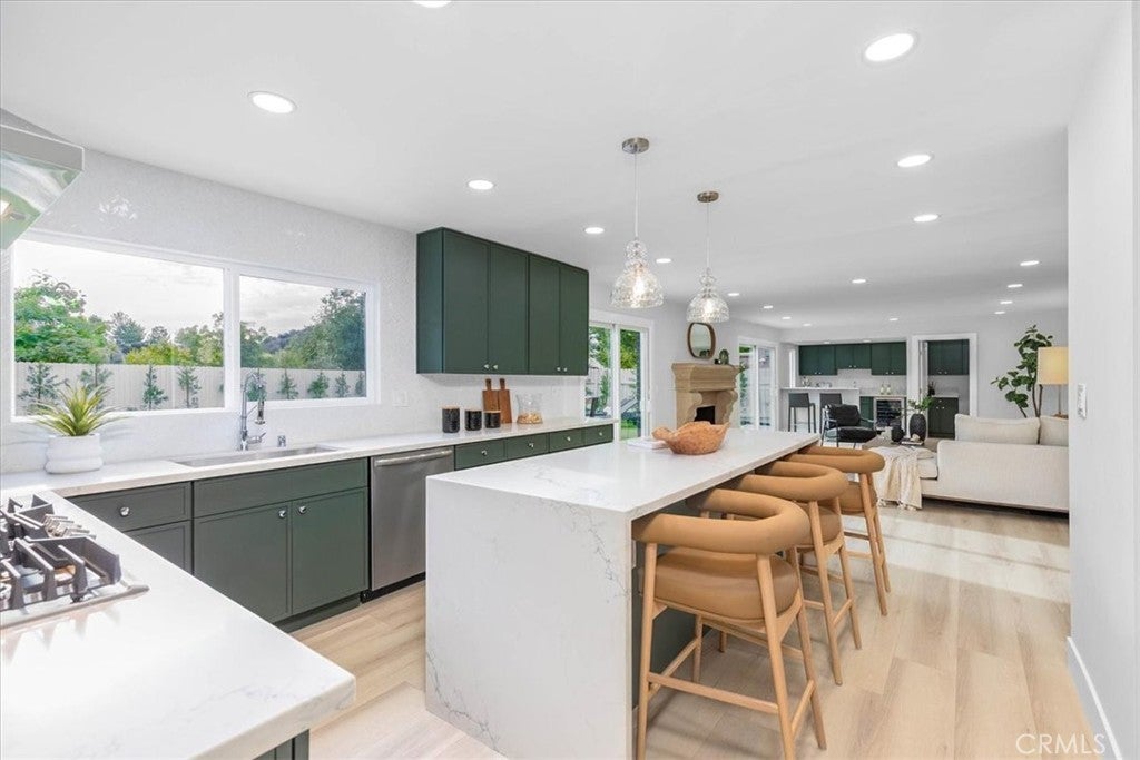 Discover modern luxury at its best in this exquisitely remodeled home with amazing views, located in Woodland Hills' most sought-after Artists Colony neighborhood. With four bedrooms, two and a half bathrooms, and 2,594 Sqft of living space across two levels, this charming residence boasts modern finishes and an abundance of natural light throughout. The main level features a spacious family room with a beautiful precast fireplace, an open custom-built kitchen with new stainless appliances, a bright and airy living room, and a dining room. Upstairs, you'll find generously sized bedrooms, including a luxurious master suite with its own en-suite bathroom and a walk-in closet. The upscale finishes throughout the property elevate the living experience to new heights. Outside, the expansive backyard and side yard provide the perfect backdrop for enjoying the stunning views. And the inviting pool is the ideal spot for relaxation and entertainment. Experience the ultimate modern living in this exceptional home, where every detail has been thoughtfully designed for your comfort and enjoyment. . Situated just minutes from Ventura Blvd, shopping, cafes and high rated school! Additional amenities include a finished three car garage