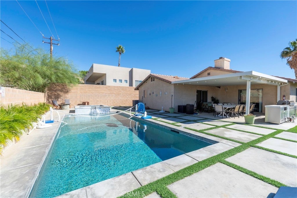 Welcome to this beautifully updated home in the heart of Desert Hot Springs! This move-in ready property offers modern comfort and resort-style living with recent upgrades completed about a year ago. Step inside to find a new flooring throughout, updated countertops in the the kitchen and bathrooms, and stylish finishes that create a fresh, contemporary feel. Relax and entertain in your own private backyard oasis, featuring a newly added pool and jacuzzi, a built in gas grill and a patio- perfect for gatherings under the desert sun. Enjoy the best of outdoor and indoor living with stunning desert views and all the upgrades already done for you. This home is perfectly positioned for peaceful, unobstructed stargazing nights!