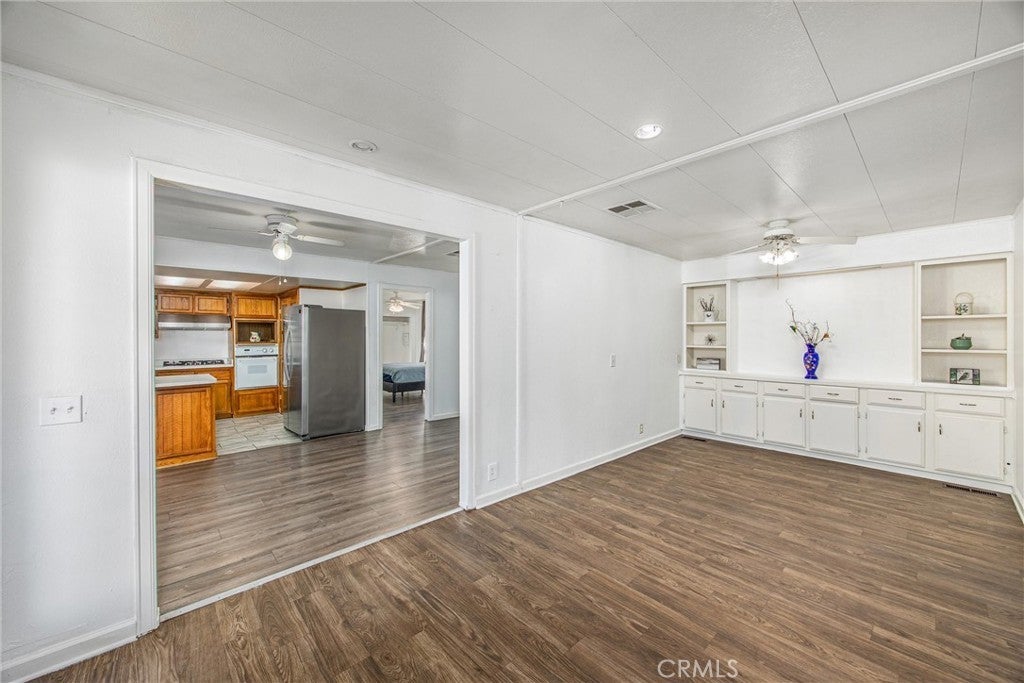 Double-wide home is spacious and flooded with natural light. Enclosed porch can easily be converted to a 3rd bedroom or used as an exercise room or space for your favorite hobby. Home features two bathrooms with walk-in showers. Located in the desirable all-ages Orange Grove Mobile Home Estates in Redlands with resort style amenities. Enjoy an open-concept kitchen, dining room, and both a family room/sitting area and living room —perfect for everyday living or entertaining. The indoor laundry room located just off the family room features newer washer/dryer and convenient access to the covered two-car carport and storage shed. The kitchen features a newer dishwasher, gas cooktop, built-in oven, new stainless steel range hood, and a pantry with abundant shelving, while built-ins in the dining room and secondary bedroom add charm and functionality. The en suite primary bedroom has generous closet space - 2 closets - and bathroom has dual-sink vanity. The secondary bedroom offers direct access to the hallway bathroom and has new sink. Freshly painted and move-in ready, with vinyl flooring throughout bedrooms and living spaces, and dual-pane windows, this home combines comfort and convenience. Outside, relax on the awning-covered porch and enjoy mountain views, and well-kept grounds. Community amenities include a pool, spa, fitness center, library, clubhouse with billiards, on-site RV storage, and laundry facilities—all in a prime Redlands location near the University of Redlands, shopping, parks, and restaurants.