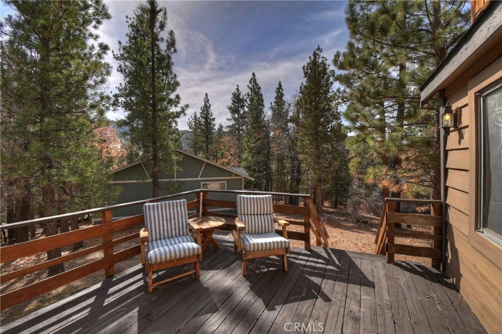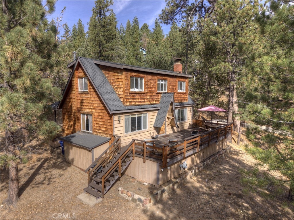 Big Bear Cabin for Sale Near Bear Mountain with Dual Parcels & Peek-a-Boo Ski Slope Views A timeless Big Bear mountain cabin surrounded by tall pines, this inviting 3-bedroom, 3-bath home captures the essence of mountain living. With approximately 1,320 sq. ft. of cozy interior space, the home features warm wood finishes and a beautiful natural stone fireplace that anchors the living area. Step outside to an expansive deck where you can unwind among the trees and enjoy peaceful forest surroundings with peek-a-boo views of the Bear Mountain ski slopes. The property spans over 24,000 sq. ft. and includes two separate assessor parcels, each with its own address and utilities—offering endless possibilities for expansion or development. A level building pad is already in place at the top of the driveway, ideal for a guest house or future build. Located just minutes from Bear Mountain Ski Resort, golf, hiking trails, and mountain biking, this home combines classic cabin charm with rare investment potential—a perfect year-round retreat in the heart of Big Bear Lake, California.
