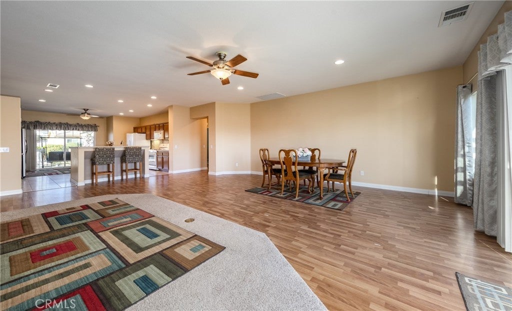 Experience desert living where comfort meets serenity at 64243 Eagle Mountain Ave—a beautifully maintained 3-bedroom, 2-bath single-level home located in the sought-after 55+ gated community of Mountain View Country Estates, adjacent to Mission Lakes Country Club. Spanning approximately 2,221 sq ft, this desert retreat blends resort-style sophistication with practical design just minutes from Palm Springs and the Coachella Valley’s finest golf, dining, and entertainment. Step inside to a bright, open floorplan with vaulted ceilings, abundant natural light, and seamless indoor–outdoor flow. The spacious living and dining areas open to a well-equipped kitchen—perfect for hosting friends or enjoying a quiet morning coffee. Step out to the covered patio and take in breathtaking mountain views and glowing desert sunsets, offering a tranquil backdrop for relaxation or gatherings. The front courtyard welcomes you with an abundance of vibrant desert plants, creating a private, peaceful setting where guests are greeted by natural beauty and warm desert breezes. This inviting space offers the perfect spot to enjoy morning sunshine or an evening glass of wine surrounded by the sounds and colors of the desert. Designed for ease and enjoyment, this home features desert color interior paint finishes, updated vinyl flooring, a large primary suite with walk-in closet, and low-maintenance landscaping. Outdoors, enjoy dedicated RV parking with hookups, a private storage shed, and access to scenic walking paths that weave through this serene, gated neighborhood. A perfect blend of style, function, and freedom, this home offers the ideal setting for those seeking year-round sunshine, community connection, and a lock-and-leave lifestyle. Whether you’re an avid golfer or dreaming of the perfect seasonal getaway, this home delivers the best of desert resort living. Luxury made simple—low HOA, stress-free, and ready to enjoy desert life at its finest. This is your new foever home, come see it today!