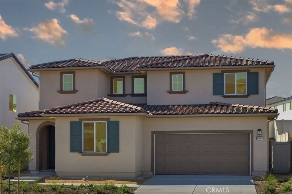 What's Special: High Ceilings | Loft | East Facing Lot. New Construction – Ready Now! Built by America's Most Trusted Homebuilder. Welcome to the Plan 6 at 34609 Clementine Street in Rosa at Siena! This thoughtfully designed home offers open concept kitchen, dining, and living room spaces that make gathering with loved ones feel effortless. The first floor features a full bathroom and a bedroom perfect for guests, while upstairs you'll find a spacious loft, laundry room, and three additional bedrooms including a relaxing primary suite with a walk-in closet. Natural light fills each room, highlighting details like white shaker cabinetry and quartz countertops. Enjoy the comfort of whole-home air filtration and the convenience of an attached two-car garage. Life at Rosa at Siena in French Valley means sunshine year-round, access to a sparkling pool and spa, and proximity to the Temecula School District, local vineyards, and scenic trails. MLS#IG25257679