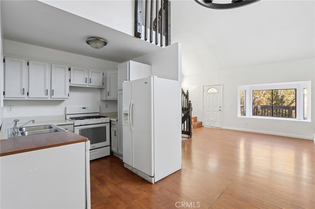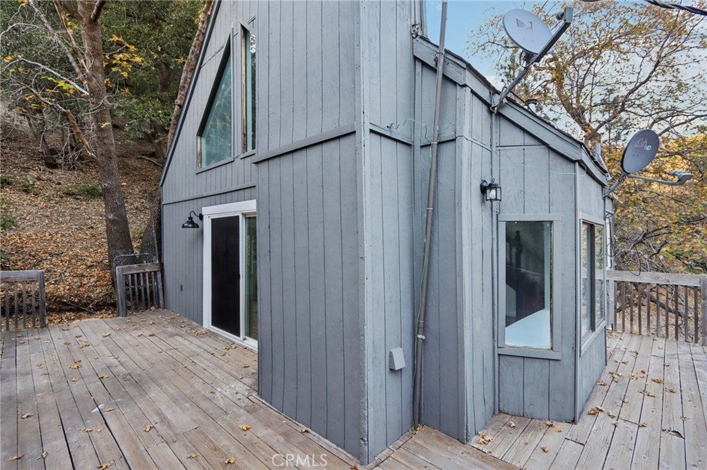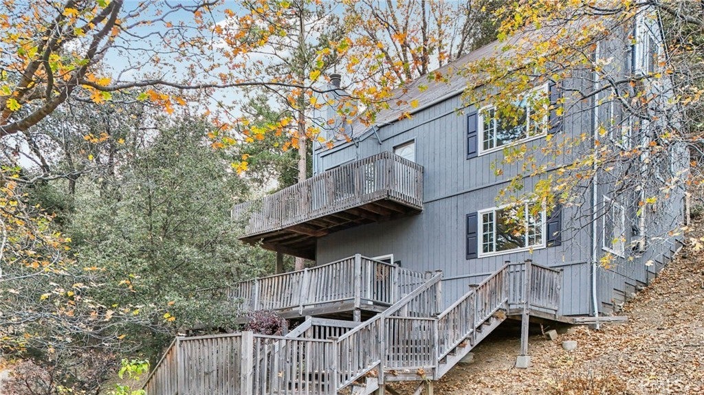 Come experience the seasons in Angelus Oaks with golden oak trees in Autumn and the occasional snow fall in Winter! This 3-story home is perfectly situated back from the road in a peaceful neighborhood. The first floor offers a storage closet, laundry room, and cozy family room complete with wood stove. Heat your new home with either the wood stove or central heat. The second level is the main living space. The spacious living room features an eye-catching A-Frame window that lets in an abundance of natural light and stunning views. Sit around the fireplace or entertain off the adjoining wrap-around porch. The living room flows into the bright dining and kitchen areas with freshly painted grey cabinets. Conveniently located on this same level are 2 bedrooms with a full, updated bathroom. A large bedroom loft with closet sits on the third floor. This special space feels like you’re in a tree house. Sip your morning coffee from your 3 rd floor deck overlooking the forest. This home has a stylish new black door and fresh paint inside and out. It’s just 20 minutes from Redlands, and offers fresh air and starry nights!