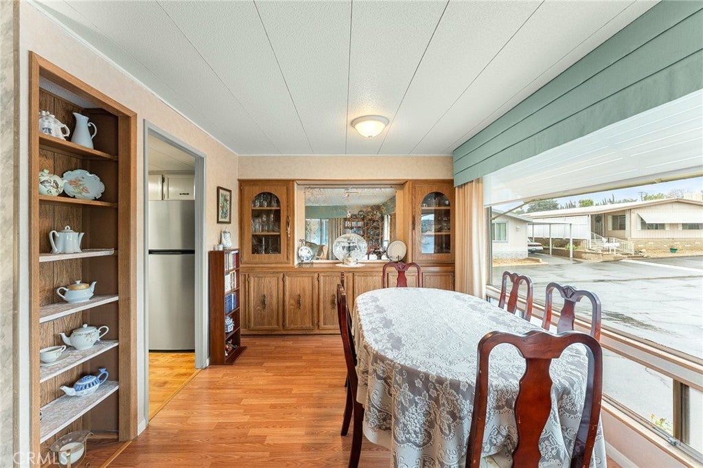 Fantastic Location in Upper Yucaipa. Hidden Village Mobile Home Estates, 55+ Senior Community. Super clean! Beautiful & Spacious 2 bedroom, with expando giving added space for office, gym, craft room or whatever your heart desires. Almost all newer dual pane windows throughout. Tons of natural light with views of the San Bernardino mountains. Impeccably maintained inside and out, with earthquake stabilizers installed and recently inspected approx July 2025. Updated Kitchen granite countertops, Newer slider, updated flooring in kitchen and living area all on a large corner lot.