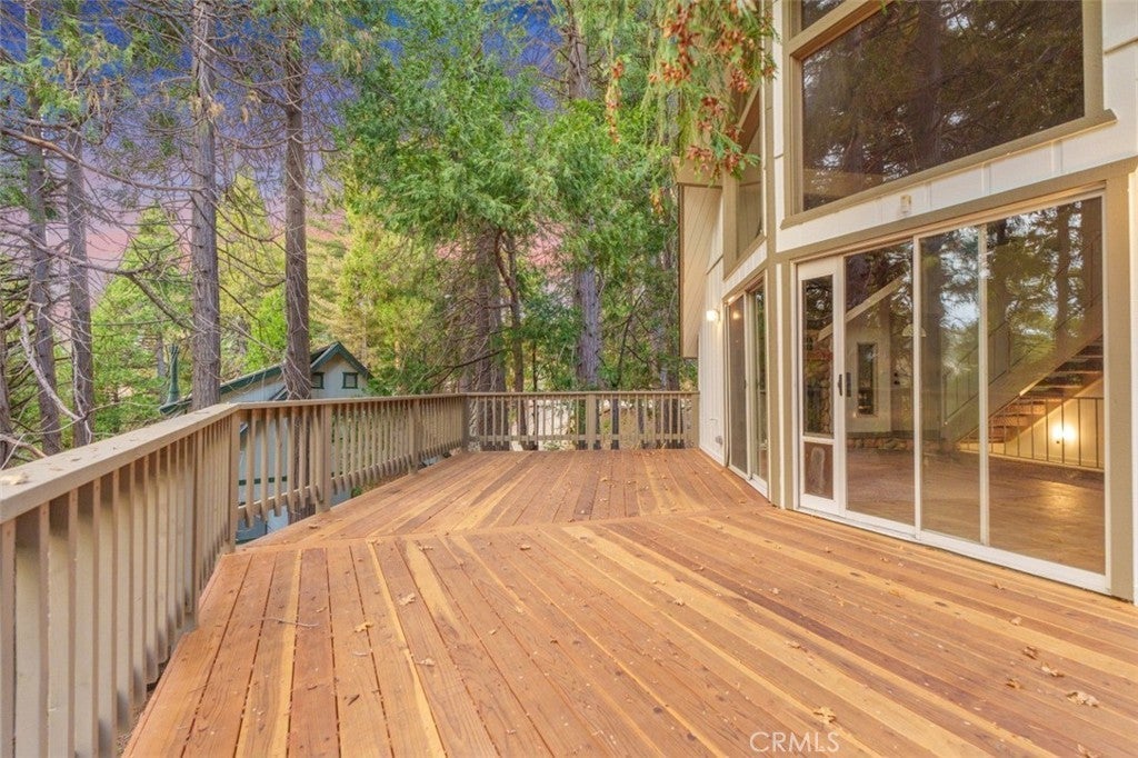 Light and bright, this Prow-style Lake Arrowhead retreat with Lake Rights captures the essence of mountain living with a fresh, inviting energy. Blending timeless mountain architecture with thoughtful updates, the home’s signature design highlights cathedral ceilings and large windows that flood the interior with natural light, creating an open, uplifting atmosphere throughout. Fresh paint inside and out enhances the crisp, clean feel, making every space renewed and ready to enjoy. The main living area centers around a dramatic wall of glass that frames the surrounding trees, offering peace, privacy, and a true connection to nature from nearly every angle. Whether you’re relaxing by the fireplace, hosting family and friends, or savoring a quiet morning coffee, this home lives like a true mountain escape. Step outside to brand-new decks, thoughtfully rebuilt for comfort, style, and outdoor living. Enjoy the forest views, listen to the breeze through the pines, or gather for weekend barbecues under the open sky. The setting feels private yet conveniently close to town, offering easy access to Lake Arrowhead Village, dining, and of course your Lake Rights. The lot provides generous parking, including room to accommodate an RV or boat, an incredible perk for full-timers, weekenders, or lake enthusiasts. There’s plenty of space for guests as well, making this a property designed for connection and ease. Offering Lake Rights and blending classic mountain character with fresh updates, this home delivers charm, function, and opportunity. Whether you’re seeking a peaceful primary residence, a part-time getaway, or a place to grow into, it’s ready to welcome you home above the clouds.