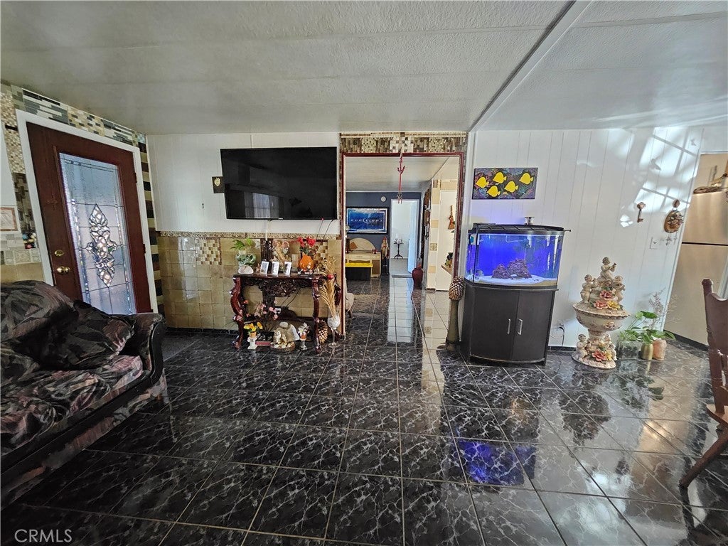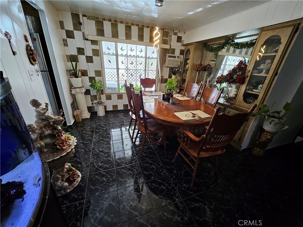 Welcome to this charming and well-cared-for 3 bedroom, 2 bathroom manufactured home, offering a warm and inviting atmosphere with plenty of living space. Step into a bright, open dining area with large windows, custom tile accents, and a modern light fixture that adds a stylish contemporary feel. The kitchen features generous counter space, butcher-block style countertops, white cabinetry, tile backsplash, gas stove, stainless steel refrigerator, and a convenient peninsula—perfect for prepping meals, A comfortable living room with plenty of room to entertain.
