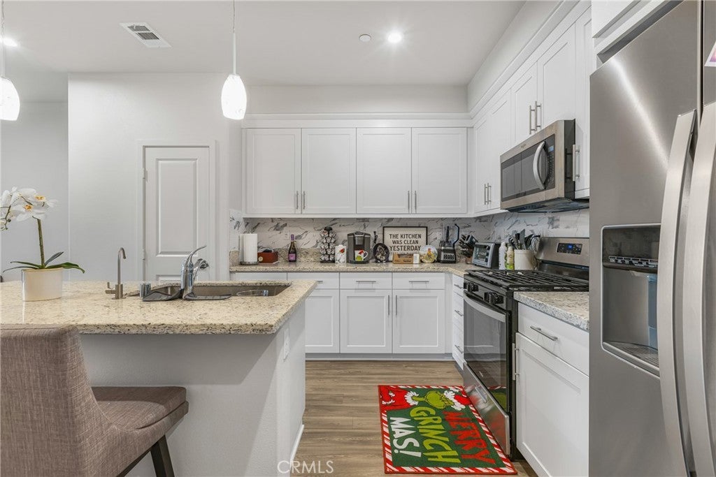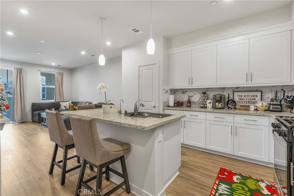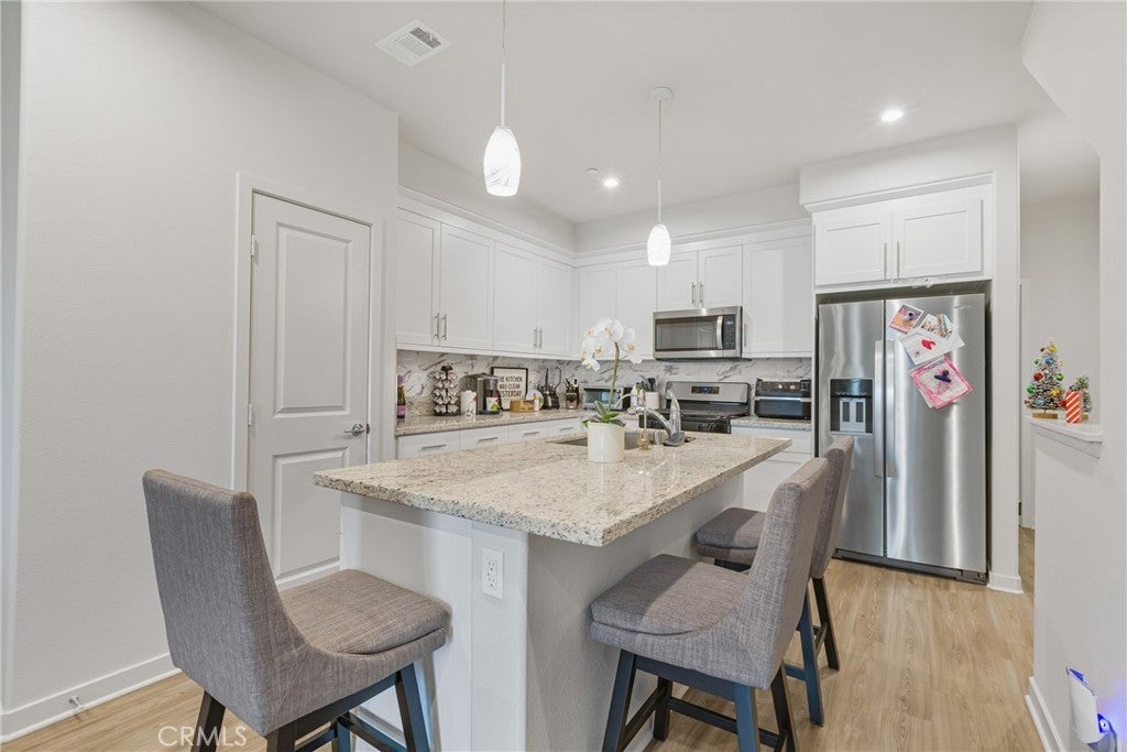 Beautiful newer-built tri-level townhome in the highly sought-after Stafford Place Community of Covina. This spacious 3 bedroom, 3 full bath home offers an open, light-filled floor plan perfect for modern living. The chef-inspired kitchen features a large island, stone countertops, and sleek white cabinetry, opening to the expansive great room and private balcony—ideal for entertaining or relaxing. The main level includes a versatile bedroom and full bath, great for guests, extended family, or a home office. Upstairs, the primary suite offers walk-in closets and an en-suite bath, while the third bedroom also features its own full private bath for added convenience. Additional highlights include a tandem garage with ample storage, beautifully maintained community amenities with a trellis and BBQ area, a low tax rate, and the benefits of newer construction for modern comfort and efficiency. Located close to shopping, dining, and major freeways, this move-in-ready home delivers style, convenience, and exceptional value. A fantastic opportunity in a desirable Covina community!