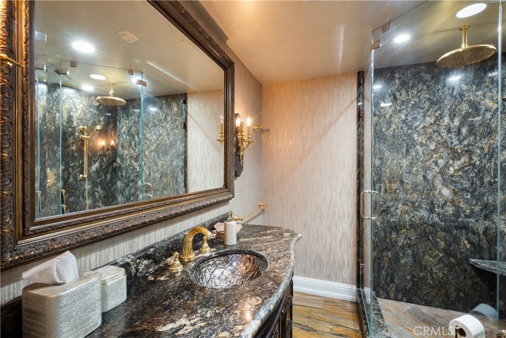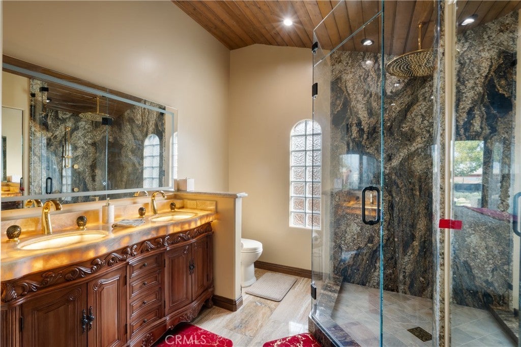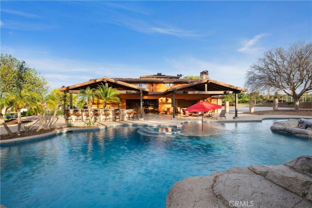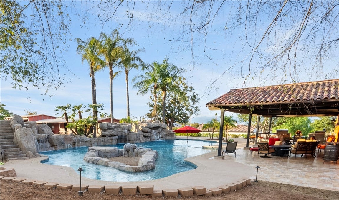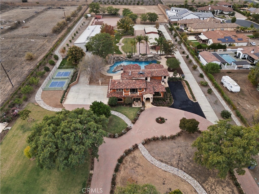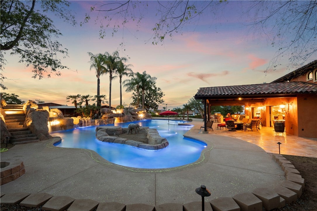 Experience unparalleled luxury and private resort living located near the base of the magnificent Cleveland National Forest. This executive estate spans five flat meticulously developed acres and has been fully remodeled using uncompromising hight quality building materials, creating a sanctuary where sophisticated comfort and lavish entertainment meets an equestrian lifestyle. Step into a light-filled masterpiece where every detail is perfected. The main residence is defined by seamless indoor-outdoor living, highlighted by panoramic sliding glass doors that disappear to showcase sweeping views of the property. The chef's kitchen has custom cabinetry, statement lighting, a Galley sink and a full suite of premium Wolf and Sub-Zero appliances. The amenities extend beyond the kitchen including a custom, climate-controlled 1,700 bottle wine cellar, perfect for the serious collector. The backyard is a private waterpark and entertainment delight. At its heart lies the stunning 90,000 gallon salt water pool, complete with a winding lazy river surrounded by luminous glow stones for magical evening swims. The extensive outdoor kitchen is ready to host grand events, complimented by a professionally installed sound system throughout the entire property and thoughtfully placed outlets throughout the landscape for lighting and events. The fully landscaped grounds feature a diverse collection of mature fruit trees creating a truly idyllic setting. For horse enthusiasts, this property is a dream come true featuring, 7-stalls, five of them enclosed and equipped with Comfort Stall designed for the well-being of your horses. A round pen is ideal for training and exercise, a massive 150ftx265ft riding arena plus a dedicated staging area. Flexibility is maximized by a 5,000 SqFt insulated metal building, this structure includes dedicated office space and offers incredible utility, storage, or potential workshop space. The property includes a detached Guest House/ADU complete with its own living quarters, privacy, and dedicated two-car garage. All with the same sophisticated comfort as the main house, making it perfect for multi-generational living. This estate represents a rare opportunity to own a legacy property that combines luxury, utility, and a truly unmatched lifestyle in a highly desirable, secluded location. Private viewings are available by appointment only.