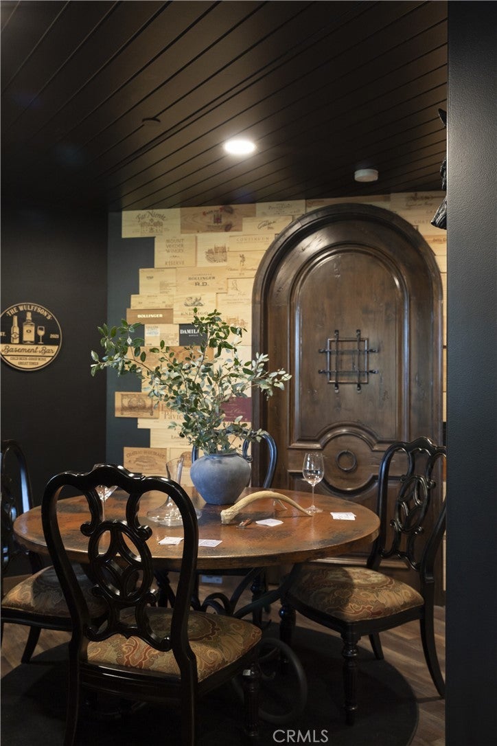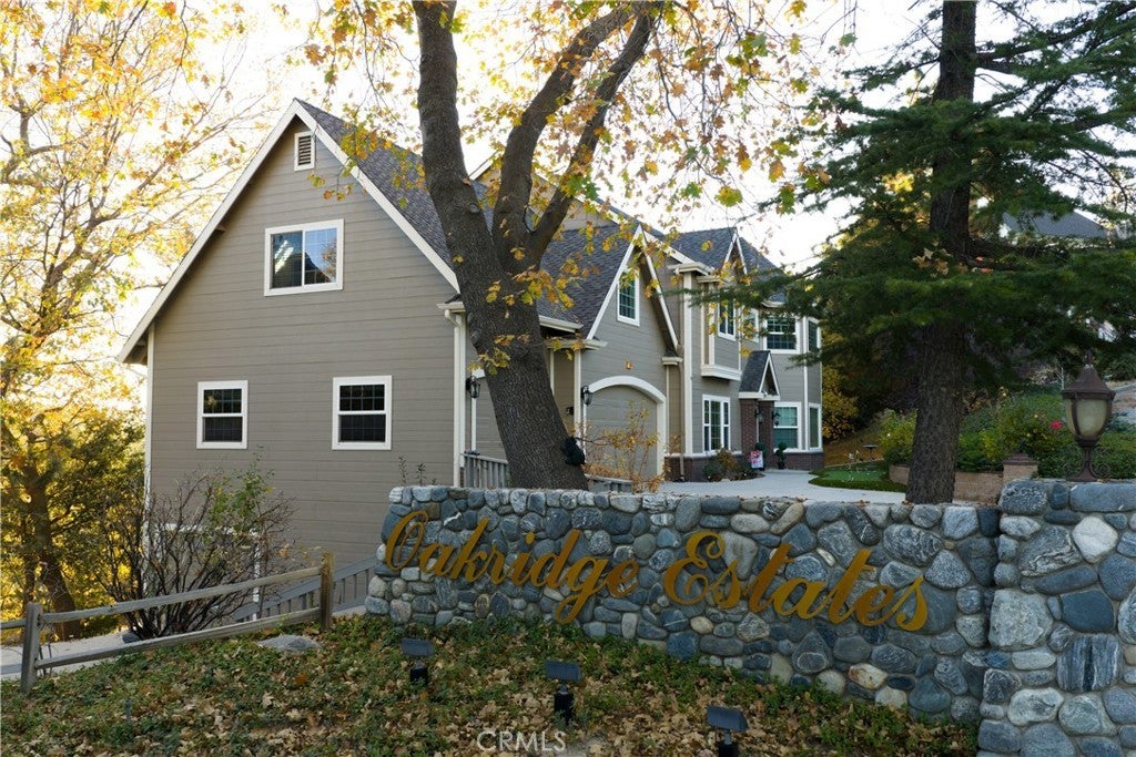 Surrounded by vibrant fall foliage in Lake Arrowhead’s private Oakridge Estates, this spacious mountain retreat blends warmth, comfort, and effortless year round living. Highlights include level entry, a four car garage, and incredible privacy on a half acre corner lot. Inside, thoughtful design and classic details create a welcoming feeling from the moment you step in. Large windows frame the trees and distant ridgelines, rich wood floors add warmth and the main living room centers around a timeless fireplace. The kitchen, dining, and family rooms flow together seamlessly, making everyday living feel easy and connected. A dedicated home office on the main level is ideal for remote work or quiet focus. Upstairs, four generous bedrooms offer plenty of space to unwind, while the lower level is designed for entertaining, complete with a billiards, brew, and wine lounge perfect for hosting friends and family. Outside, the deck sits above the treetops with filtered mountain views and a remote controlled pergola that makes it comfortable in every season. Oakridge Estates is a peaceful community with no short term rentals, plowed and maintained roads, and private lake rights. Just minutes to the country club, the lake, and some of the best hiking trails in Lake Arrowhead. A warm, welcoming retreat for all seasons and especially magical in the fall.