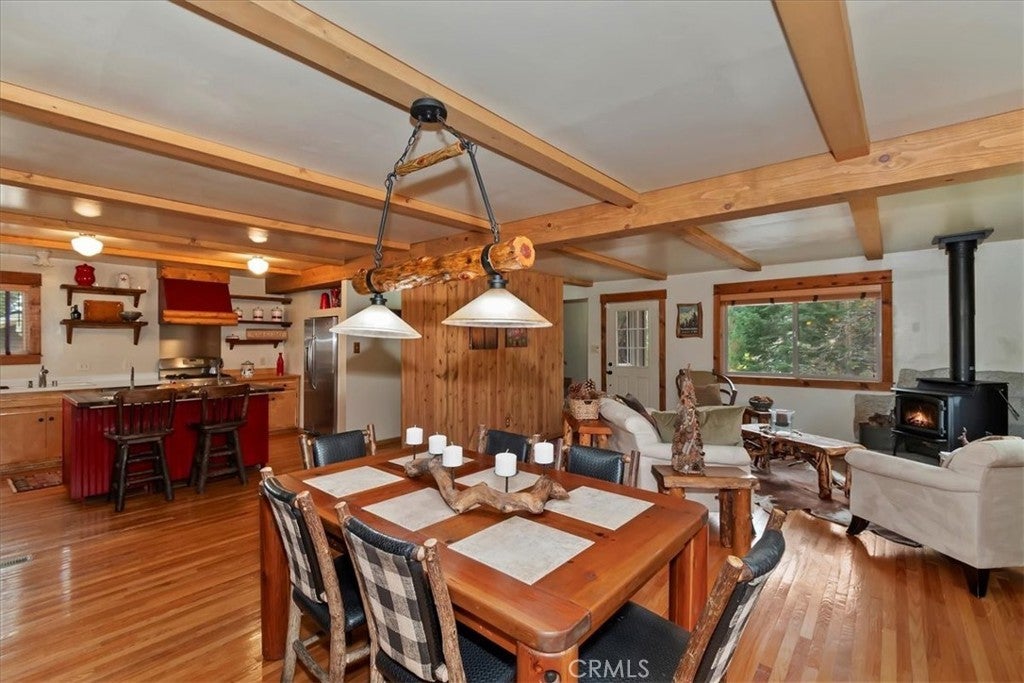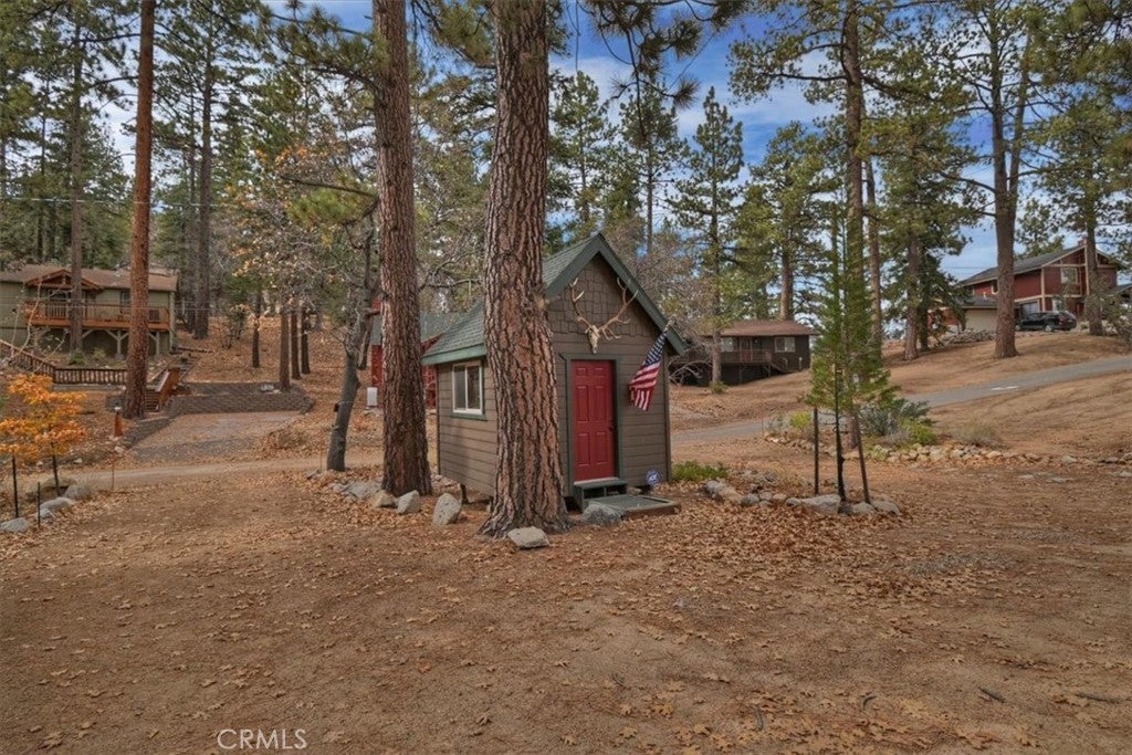 Welcome to 929 Andrew Lane, a charming mountain retreat nestled in the peaceful woods of Big Bear Lake. This cozy 2-bed, 2-bath home offers the perfect blend of rustic character and comfortable living, ideal as a full-time residence, vacation escape, or investment property. The home features rich oak flooring beamed ceilings. New Roof exterior and interior paint, updated kitchen and bathroom and custom blinds, custom built shed and professionally landscaped with drip system. Step inside to an inviting open-concept living area featuring warm wood accents, ample natural light, and a classic mountain-home ambiance. The spacious layout includes a comfortable living room, a functional kitchen, and well-sized bedrooms that provide privacy and relaxation after a day on the lake or slopes. Situated on a generous 0.29-acre lot, the property offers room to breathe, with mature trees and outdoor space perfect for entertaining, seasonal gatherings, or simply soaking in the alpine environment. Its quiet location provides a sense of seclusion while still being just minutes from Big Bear Lake, the village, hiking trails, and ski resorts. Whether you're seeking tranquility, adventure, or a blend of both, this home delivers an authentic Big Bear lifestyle in a classic mountain setting.