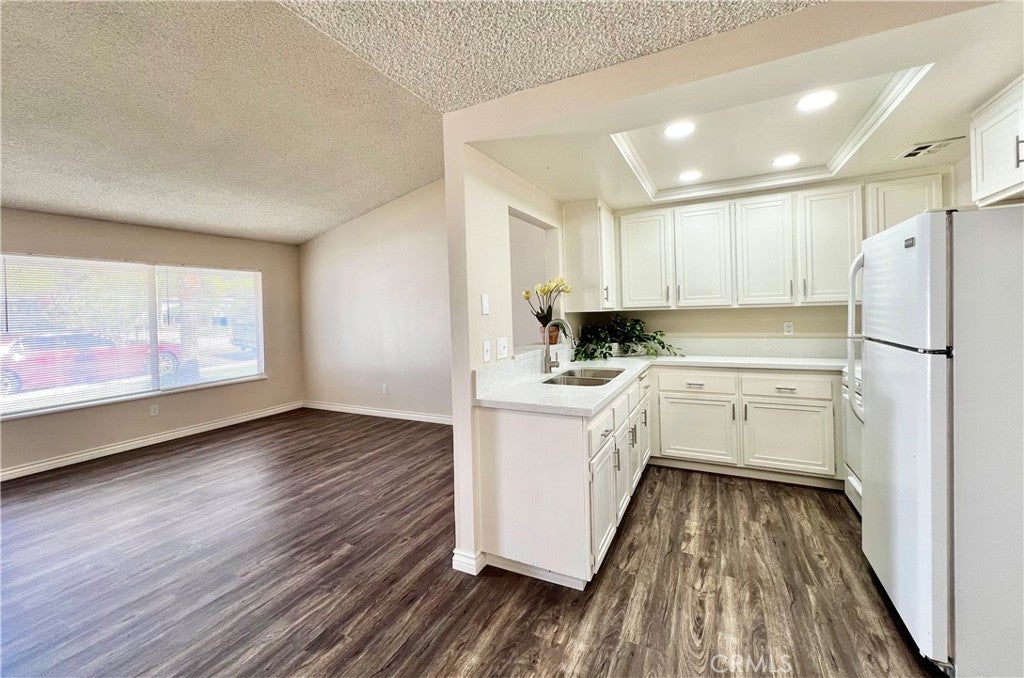 A great opportunity for this Charming 1-bedroom, 1-bath condominium. This home features bright, modern interiors recent renovations boasting reclaimed-look with laminate floors, quartz countertops, firdge included and recessed lighting. Attached one-car garage with additional storage, washer-dryer included, adds convenience. Community features a sparkling swimming pool and lush green lawns, ideal for relaxing or entertaining. Sewer, trash, bbq and grounds maintenance are included with HOA. Location offers a quiet residential feel and city access. Near Highway 210, major shopping, dining, and work hubs throughout the Inland Empire. Within reach of several schools: nearby options include Aquinas High School, among others. Welcome home