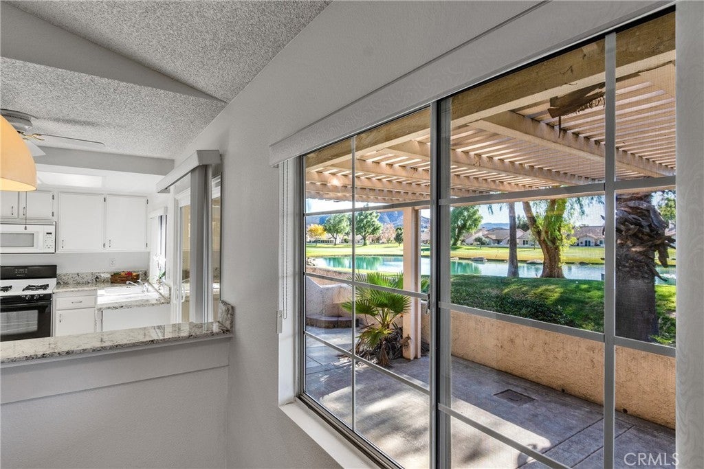CONDO with EXCEPTIONAL GOLF COURSE & LAKE VIEWS - It's the Idylwild Model (Single Level, 985 SF - 2 BR 2 BA), located on the 18-Hole Championship Golf Course of Sun Lakes Country Club, a 55+ Active Adult Community with NO MELLO ROOS!. The VIEWS are unobstructed and OUTRAGEOUS with Lots of Large widows to showcase those views as well as offering a Wonderful Natural Light Flow, A/C REPLACED; Neutral Vinyl Flooring (Carpet in Bedrooms), Cabinets Painted White with new hinges & hardware; Cathedral Ceilings, Cozy Fireplace, Granite Counters in Kitchen, Ceiling Fans throughout; and an Alumawood Patio Cover. ....... Sun Lakes Country Club goes beyond just a place to live - It's a vibrant community designed to keep you Active & Engaged, offering: TWO 18-HOLE GOLF COURSES with 2 Pro Shops, THREE Clubhouses, TWO Restaurants, Bar & Lounge, Tennis, PICKLEBALL COURTS, Pools (Including Large Indoor Pool), Jacuzzi Spas, THREE Fitness Centers & Fabulous Planned Activities Offered on a Daily Basis. There are 80+ Social CLUBS, including: Dancing, RV Club, Yoga, Table Tennis, Cards, Bocce Ball, Bowling, Car Club, Drama/Theatre Club, Sewing, Tennis, Knitting, Bingo, Travel, Quilters, Art League, International Culture, Genealogical Society, Garden, Photography, Travel, and a lot MORE .... If that's not Enough, Add TRIPS AND TRAVEL EXCURSIONS scheduled all year long. Association Dues INCLUDE CABLE TV & INTERNET - The community is Located Close to Casinos, World Famous Shopping (Cabazon and Palm Springs), Restaurants, and Excellent Medical Facilities - SUN LAKES COUNTRY CLUB is has a backdrop of two Mountain ranges, which offer stunning views - LIFE IS GOOD in our Awesome Community!