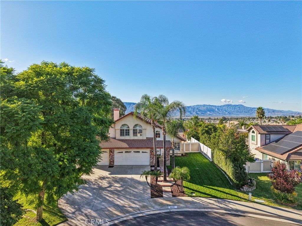 VIEWS VIEWS VIEWS!! Beautiful 3 bed, 2.5 bath home sitting at the end of a cul-de-sac street on an 11,761 sq ft lot is ready to be made yours and features great curb appeal with well manicured landscaping, and an attached 3-car garage. The interior is spacious with vaulted ceilings, a neutral paint scheme, recessed lighting, tile floors on the main level and carpet floors in the bedrooms. Enter into the formal living room which flows into the dining room. The large kitchen has been updated and offers gorgeous wood cabinetry, and granite countertops. The kitchen opens to a breakfast nook area as well as the family room with fireplace, and a half bathroom and laundry room complete the main floor. All of the bedrooms are located upstairs as well as a loft area at the top of the stairs. The main bedroom has a large private attached balcony with stunning citylight, lake, and mountain views! There is also a main bedroom ensuite with soaking tub, separate shower and dual sink vanity. The 2 secondary bedrooms share a full-size hall bathroom. Enjoy the private backyard covered patio area and mountain views, this space is ready for the new owner's design! This home is conveniently located near schools, shopping, dining, and not far from the 15 Fwy. Move right in and start making unforgettable memories in this inviting home!