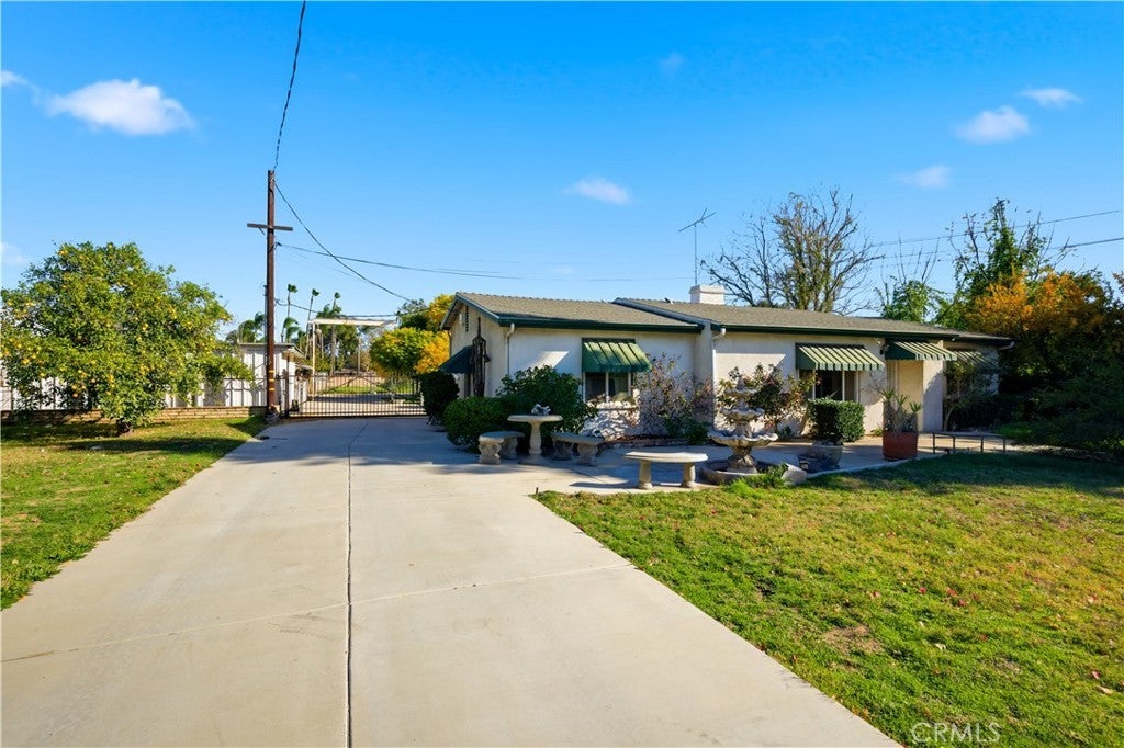 Huge price reduction! Investor opportunity!!! Although zoned for residential, there is great potential in this expansive property! Buyer to verify possible ADU (Accessory Dwelling Unit) potential with County of San Bernardino Planning Department. There is a 5-bedroom, 2-bath single story home, a detached workshop, 2 garages, 2-carports with power, separate garden potting shed and storage sheds located on this oversized even lot. Block walls surround the property with rolling electric gate at driveway. The concrete driveway was poured to accommodate up to 6 tons weight. Seller will not do any repairs or clean up existing debris.