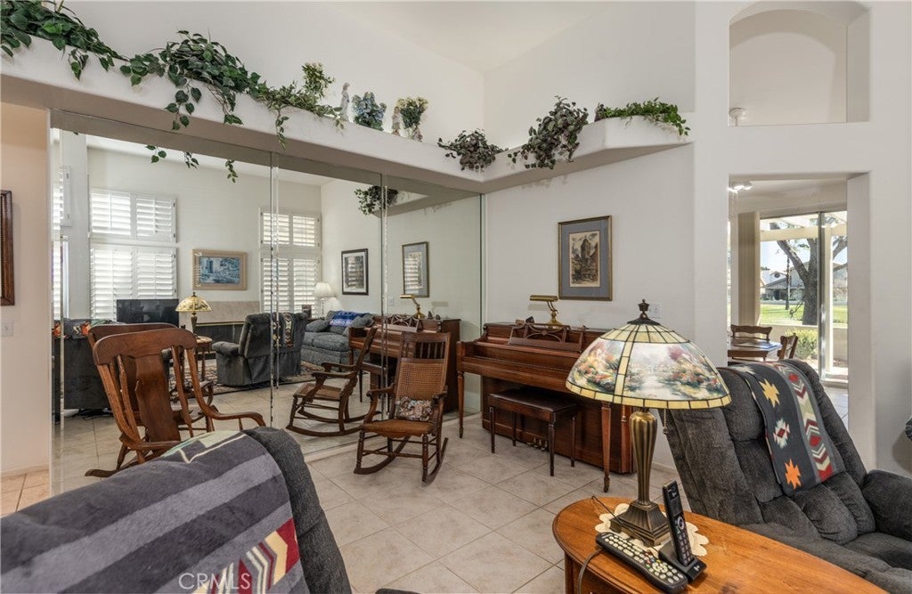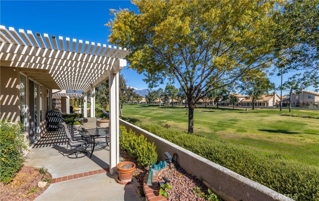 Golf Course Home on the 15th Green at Sun Lakes Country Club, perfect for those 55+ seeking a scenic and active community. This home offers a prime location with views of the golf course, making it an ideal retreat for golf enthusiasts and those looking for a vibrant lifestyle. Beautiful two-bedroom, two-bath home with a living room/dining room and a den, ideally situated on the 15th green. The kitchen features windows and patio doors that let in natural light and offer a stunning view of the golf course. Relax on a private side-entry patio or enjoy the back patio with solar lighting overlooking the course, fostering a sense of tranquility and leisure. Located in the San Gorgonio Pass between Palm Springs and Los Angeles, and close to Casino Morongo Resort and Desert Hills outlet shopping. Sun Lakes Country Club offers two 18-hole golf courses, three clubhouses, two pro shops, pools, fitness centers, weekly entertainment, and numerous clubs and activities, making it ideal for those seeking an active, social lifestyle. Two 24-hour manned gates provide added security and peace of mind.