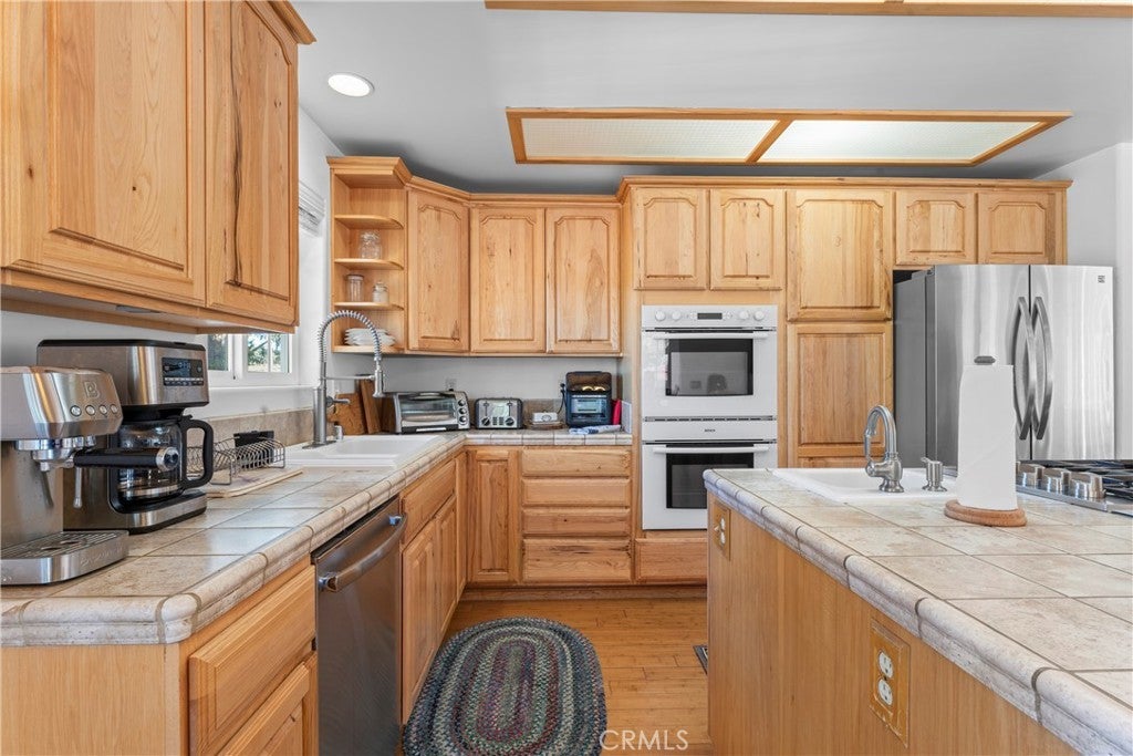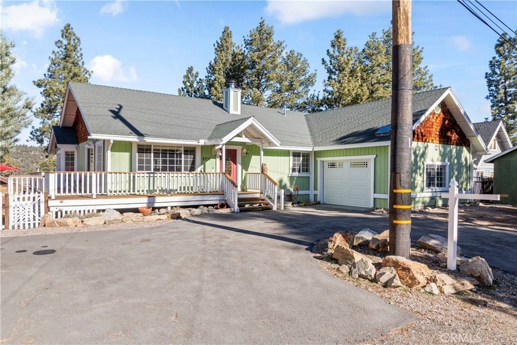 Erwin Lake home packed with perks. Enjoy easy, single-level living on a flat, user-friendly lot in a neighborhood known for its wide open feel and peaceful surroundings. Breathtaking mountain views on both sides create a stunning backdrop you can enjoy from sunrise to sunset. The open floor plan seamlessly connects the living room, kitchen, and family areas, perfect for gatherings with friends or cozy nights by the fire. You’ll love the high ceilings, hardwood floors, and thoughtful touches throughout. The kitchen is a chef’s dream with an enormous island, 6-burner gas stove and double Bosch ovens, all ready to help you create your favorite meals. Each bedroom feels bright and roomy and the primary offers an ensuite bathroom. The converted garage equipped with full kitchen cabinets adds even more flexibility - use it as a game room, guest suite, or your own creative studio. Outside, you’ll find a Tuff Shed ideal for a workshop or “she shed” plus an additional 8×8 storage shed for all your mountain toys and tools. Fenced yards and entertainment decks (complete with a hot tub) provide space for your human and fur friends alike. Modern conveniences include dual-pane windows, forced air heating, AC, and a recirculating pump for instant hot water. There’s also plenty of parking, with space for up to five cars. Nestled in a quiet setting, this home offers the perfect location - just minutes from Big Bear’s ski slopes, shopping, dining, and outdoor adventures. Come experience the charm of Erwin Lake living for yourself!