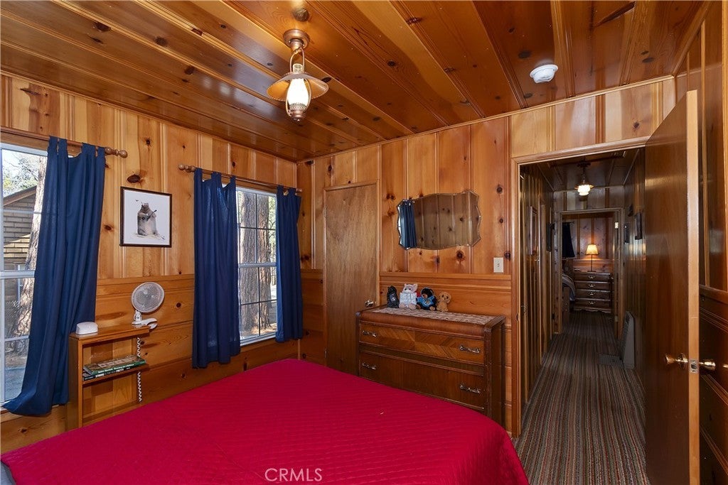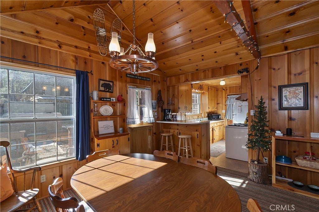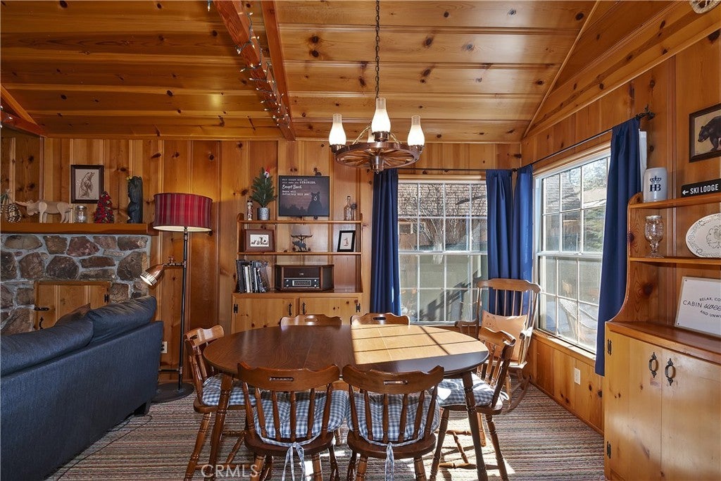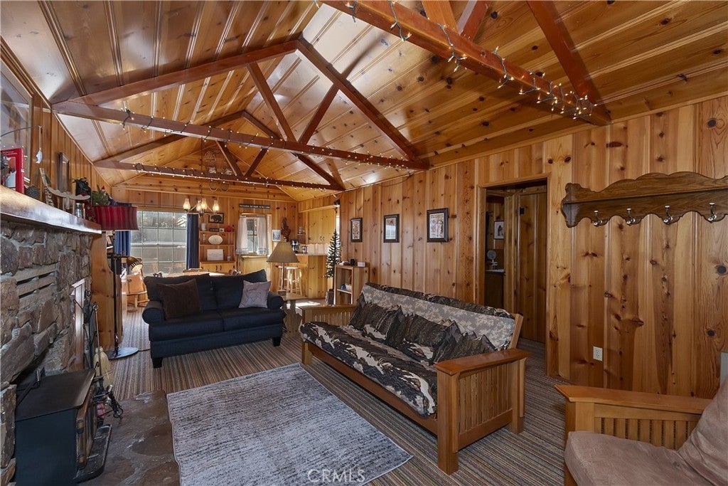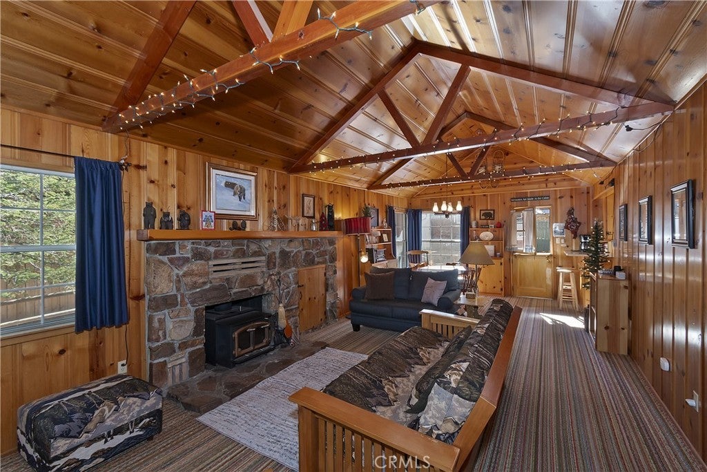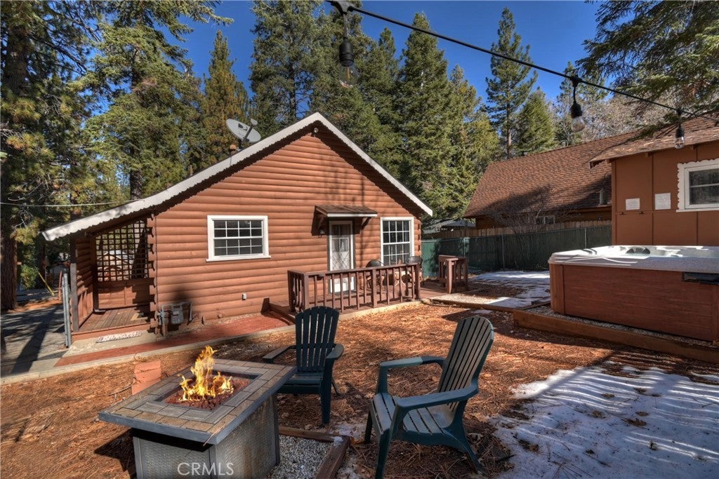 Nestled just one block from the National Forest in the highly sought-after Lower Moonridge neighborhood, this charming mountain cabin sits on an expansive 7,500 sq. ft. lot offering the perfect blend of tranquility, privacy, and outdoor adventure ~ Step inside to discover a warm and inviting interior featuring vaulted ceilings, beautifully complemented by tongue-and-groove pine walls that exude classic mountain character ~ A stunning native rock fireplace with an efficient insert becomes the heart of the living and dining area, allowing you to enjoy long, cozy fires after a day on the slopes or trails ~ The cabin features dual-pane windows that bring in natural light, along with a vintage classic stove and range that adds a touch of nostalgic charm ~ Enjoy the mountain air from the spacious Trex deck, perfect for morning coffee, evening gatherings, or simply watching the seasons change ~ soak in the hot tub after a day of adventure. Outside, the property continues to impress with a detached one-car garage ~ Ideal for storing all your mountain toys ~ Plus an additional storage shed for extra convenience ~ The lot is fully fenced and offers ample parking for the whole family, accommodating up to 10+ vehicles off-street with ease ~ Take a short walk to Lower Moonridge to grab a coffee and a donut at Dank Donuts or a night cap at the Moonridge Room. Whether you’re seeking a serene getaway, a cozy year-round retreat or an investment property, this Lower Moonridge haven captures the true essence of mountain living in close proximity to all Big Bear has to offer.