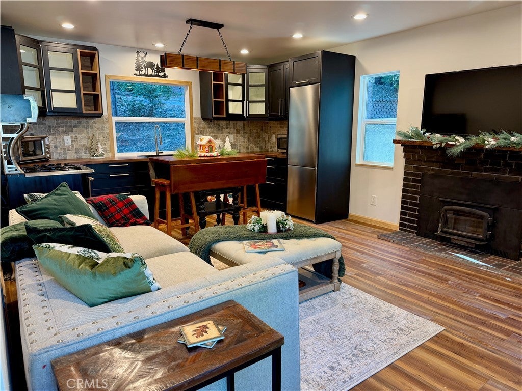 Breakfast Bar, High Ceilings, Open Floorplan, Stone Counters, Recessed Lighting, Storage, Main Level Primary, Furnished, Living Room Deck Attached