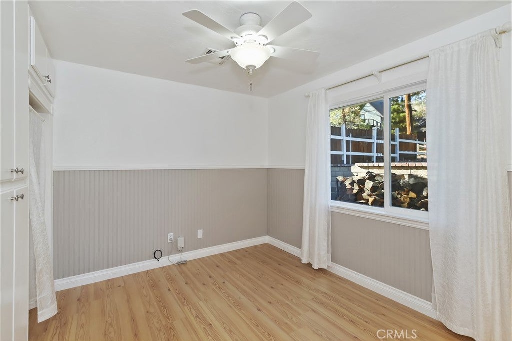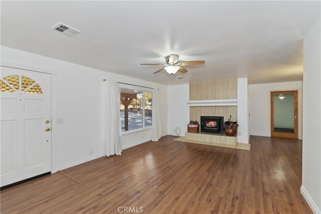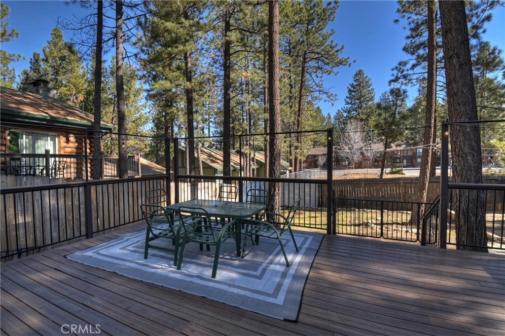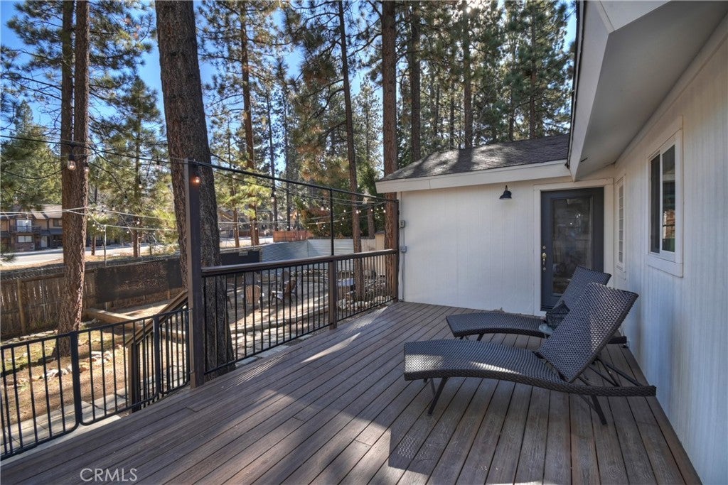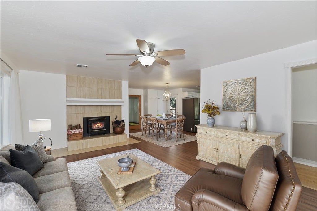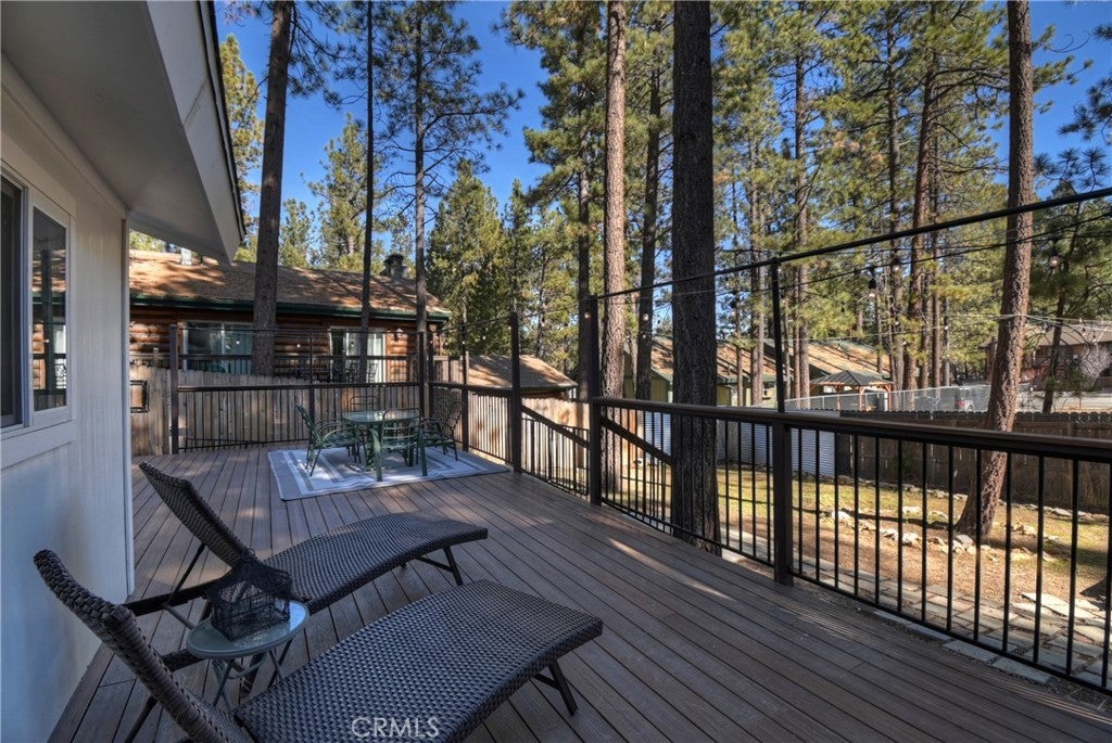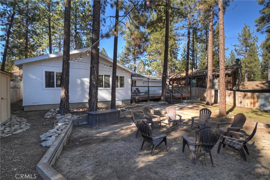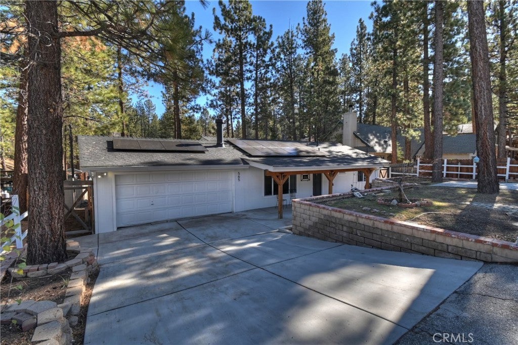 Welcome to 565 Golden West Dr — Your Summit Estates Escape Awaits ~ This Single-Story home features 4 bedrooms and 2 bathrooms ~ Walking distance to Snow Summit ~ Great proximity to local amenities, recreation, and the natural beauty throughout Big Bear (hiking trails, 2 ski resorts, Big Bear Lake, and more) ~ Solar Panels are paid for – no lease here ~ Dual pane vinyl windows ~ Covered front porch ~ Entire home is clad with James Hardie fiber cement siding and trim that is non-combustible, and resists damage from moisture and pests ~ Wood Stove Insert at tiled fireplace in the living room ~ Laundry closet in the hallway ~ Ceiling fans in all bedrooms ~ Central heat ~ Upgraded Kitchen with stainless steel appliances, upper and lower cabinets, and quartz countertops and backsplash ~ Kitchen is open to the dining area ~ The bedroom with ensuite bathroom are handicap accessible, with walk-in shower and fold-down seat, a wheelchair accessible sink, and grab bars ~ The guest bathroom that is shared with the master bedroom has a cast iron tub, with tub-to-ceiling tile and niches ~ Heat fans in both bathrooms ~ Step out back to the elevated and expansive composite rear deck with storage bin ~ Deck was built to support a hot tub ~ With no neighbor behind you currently, people watch from your deck, as skiers, snowboarders, and mountain bikers alike make their way up Summit Boulevard to Snow Summit ~ Take the composite steps down off the deck to the fully fenced backyard, complete with bistro lighting and an additional storage bin, and 2 sheds ~ Whether you’re seeking a full-time residence, a weekend getaway, or a vacation rental base, 565 Golden West Dr is a must-see ~ Imagine your life among the pines!