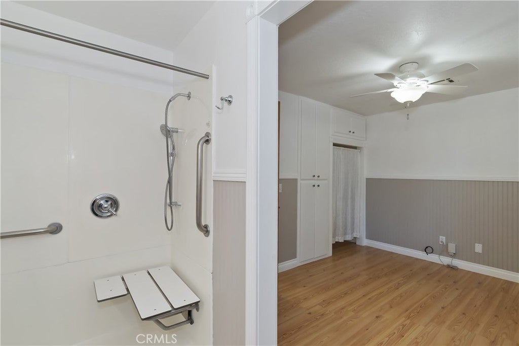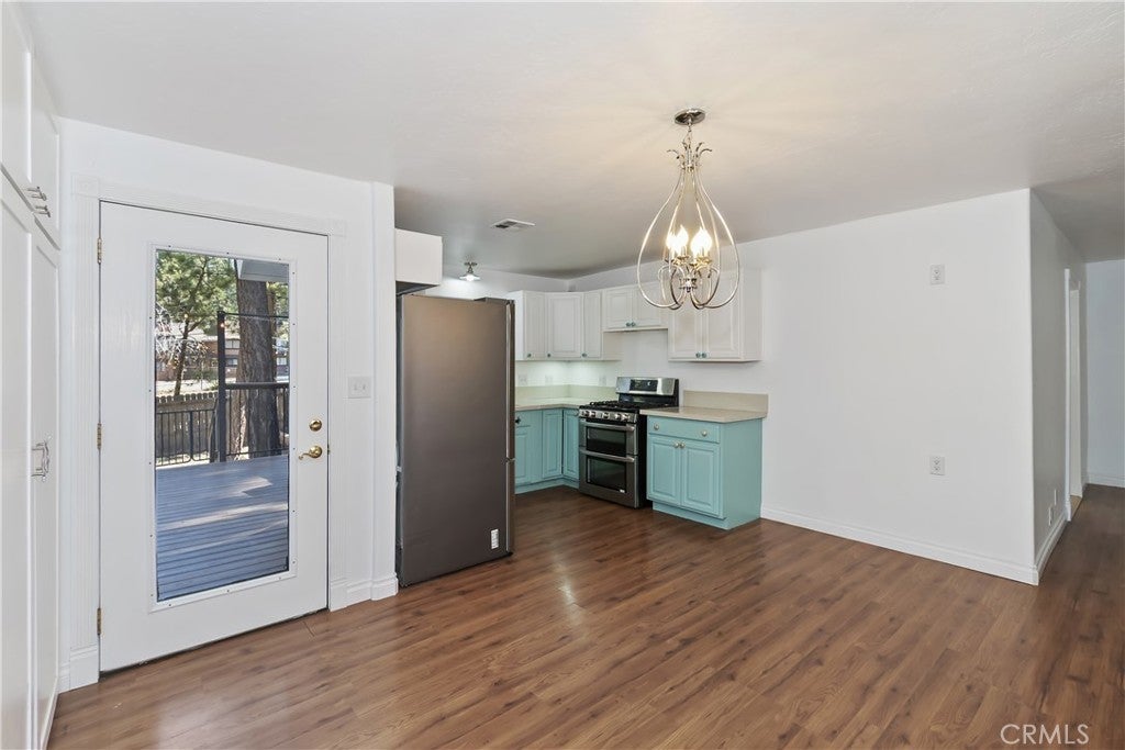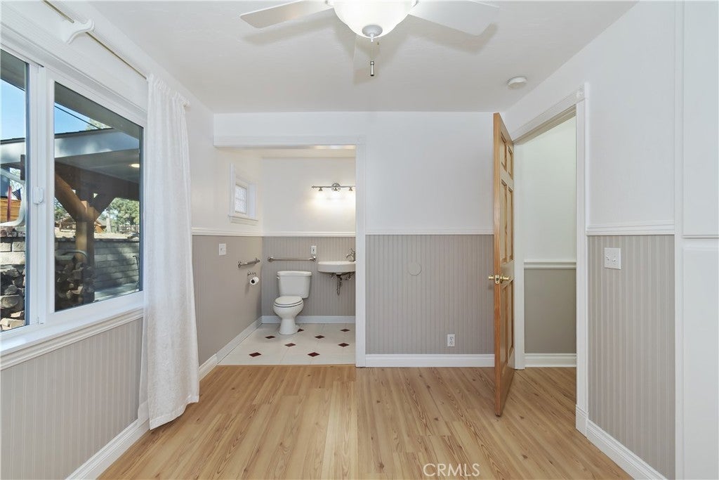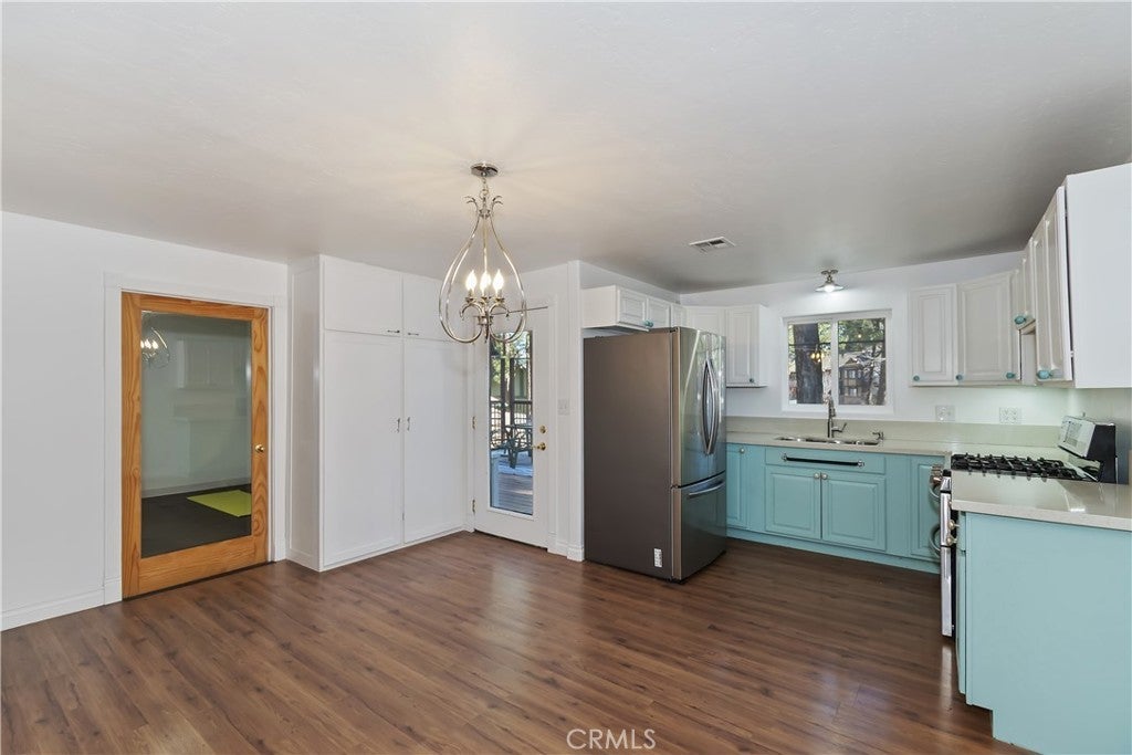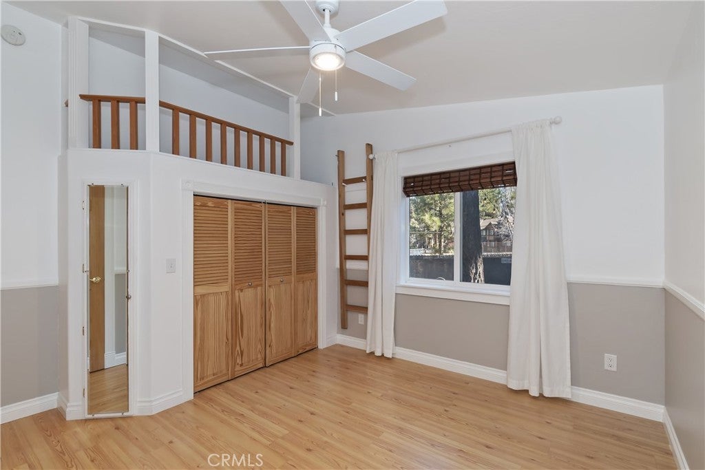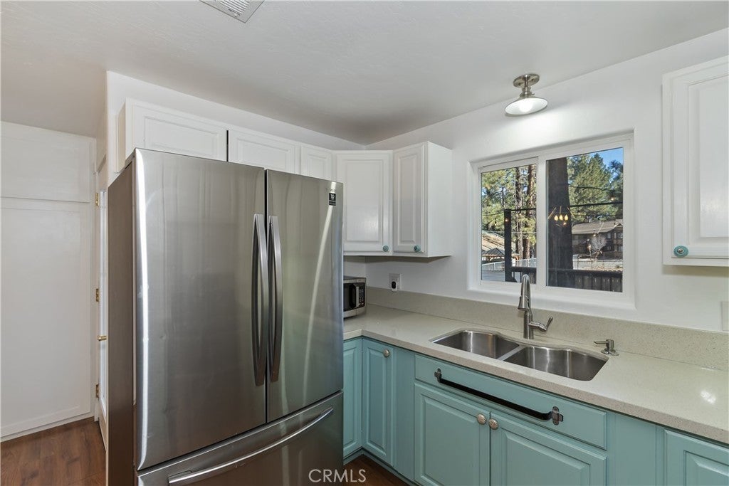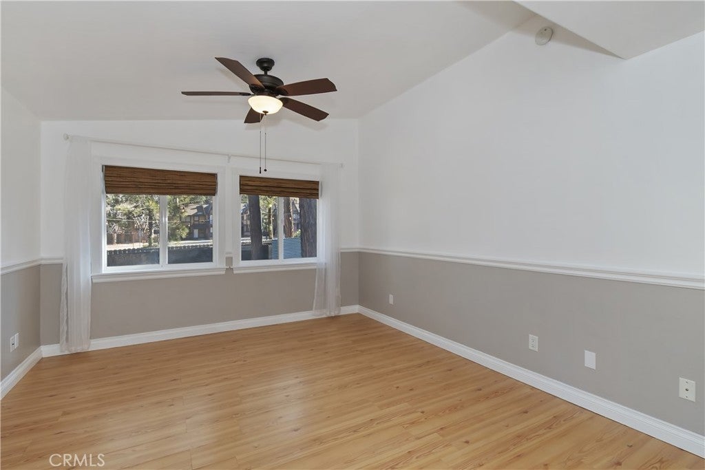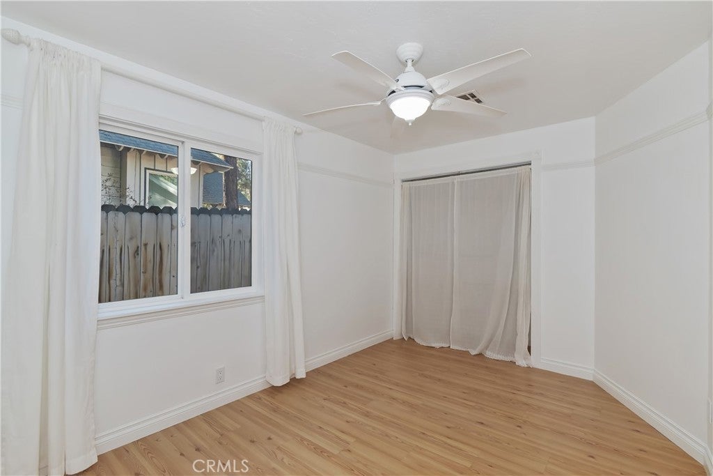 Welcome to 565 Golden West Dr — Your Summit Estates Escape Awaits ~ This Single-Story home features 4 bedrooms and 2 bathrooms ~ Walking distance to Snow Summit ~ Great proximity to local amenities, recreation, and the natural beauty throughout Big Bear (hiking trails, 2 ski resorts, Big Bear Lake, and more) ~ Solar Panels are paid for – no lease here ~ Dual pane vinyl windows ~ Covered front porch ~ Entire home is clad with James Hardie fiber cement siding and trim that is non-combustible, and resists damage from moisture and pests ~ Wood Stove Insert at tiled fireplace in the living room ~ Laundry closet in the hallway ~ Ceiling fans in all bedrooms ~ Central heat ~ Upgraded Kitchen with stainless steel appliances, upper and lower cabinets, and quartz countertops and backsplash ~ Kitchen is open to the dining area ~ The bedroom with ensuite bathroom are handicap accessible, with walk-in shower and fold-down seat, a wheelchair accessible sink, and grab bars ~ The guest bathroom that is shared with the master bedroom has a cast iron tub, with tub-to-ceiling tile and niches ~ Heat fans in both bathrooms ~ Step out back to the elevated and expansive composite rear deck with storage bin ~ Deck was built to support a hot tub ~ With no neighbor behind you currently, people watch from your deck, as skiers, snowboarders, and mountain bikers alike make their way up Summit Boulevard to Snow Summit ~ Take the composite steps down off the deck to the fully fenced backyard, complete with bistro lighting and an additional storage bin, and 2 sheds ~ Whether you’re seeking a full-time residence, a weekend getaway, or a vacation rental base, 565 Golden West Dr is a must-see ~ Imagine your life among the pines!