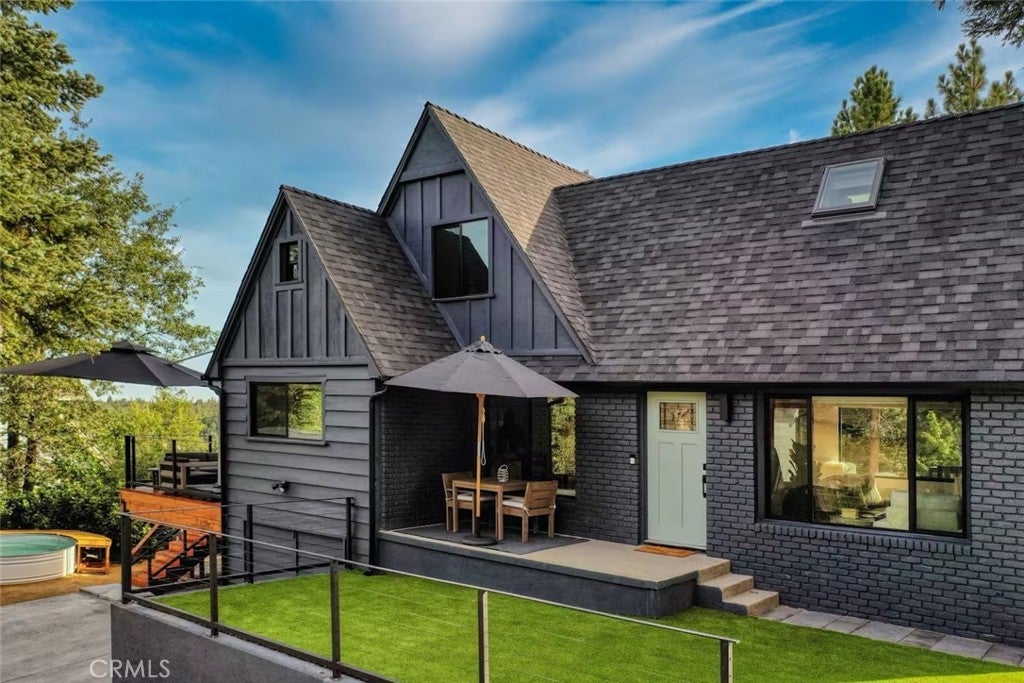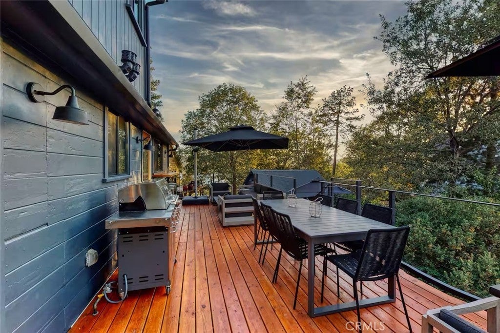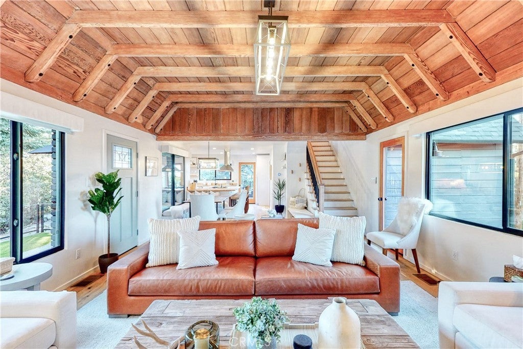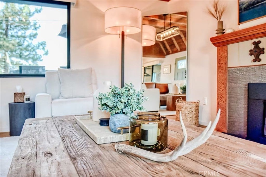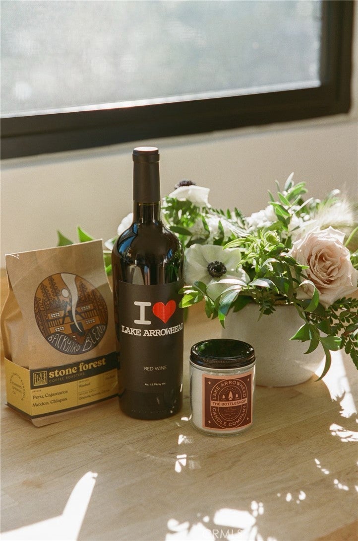 Welcome to Diamond Peak Chalet. Escape to a hidden gem in Lake Arrowhead. This charming Martha’s Vineyard-style home blends modern elegance with timeless character. Thoughtfully designed for a peaceful upscale retreat, it offers sparkling lake views from every window. Experience luxury mountain living with features such as a chef's kitchen, open concept living, shaker-style cabinetry, Restoration Hardware furnishings, custom wood-burning fireplace, premier landscaping with ambient lighting, modern tile bathrooms, engineered hardwood floors, and vaulted wood ceilings. Upgraded with amenities that include: central A/C and heating, entire home automatic generator, Samsung Frame TV, Sonos sound system, Alexa speakers in every room, primary bedroom on first floor, driveway parking for 5 cars, custom motorized blackout shades, lightning-fast internet, 2 private workspaces and plush king beds with new Slumber Solutions memory foam mattresses with hotel style Bedsure linens. This newly remodeled designer home features 4 bedrooms, 2.5 baths, and comfortably sleeps 8. With two driveways, including a half-moon entrance, there’s ample parking. Enjoy the resort lifestyle while being just minutes from the lake, trails, shops, restaurants.. A historic oak tree graces the property, offering a serene canopy. Nearby trails showcase seasonal colors! In the winter, the property becomes a snowy paradise. The front yard with new artificial turf is perfect for snow play, and a nearby sledding hill adds to the fun. Snow Valley Mountain Resort, just 30 minutes away, offers ski and snowboard adventures. The home enjoys beautiful natural light year-round. The 30-ft deck has stunning lake views, Restoration Hardware furniture, and large umbrellas. Enjoy stargazing, birdwatching, wildflowers, al fresco dining by the fire pit, and swims at the nearby private beach through private membership. With an open concept and seamless flow, this new home is truly perfect for families, groups of friends and couples who are looking for a luxurious and peaceful escape. The home features soft dimmable lighting throughout, custom live edge pass through kitchen window for ideal indoor/outdoor dining, luxury outdoor living, 6-burner gas grill, premium stainless steel Smart Samsung appliances and front load washer/dryer, butcher block countertops. This well equipped kitchen has every essential, cookware and gadget imaginable. This lake view mountain chalet will capture your senses and leave you in awe!