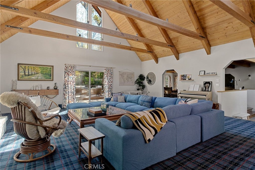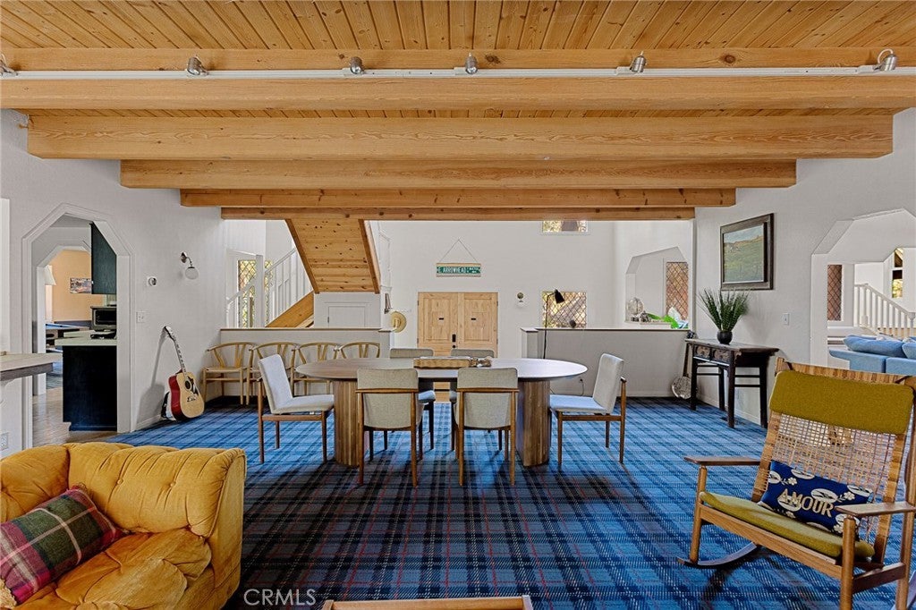 Beamed Ceilings, Breakfast Bar, Balcony, Crown Molding, Cathedral Ceiling(s), Separate/Formal Dining Room, High Ceilings, Living Room Deck Attached, Multiple Staircases, Pantry, Storage, Two Story Ceilings, Bedroom on Main Level, Entrance Foyer, Loft, Multiple Primary Suites, Primary Suite, Walk-In Closet(s), Workshop, Furnished, Track Lighting