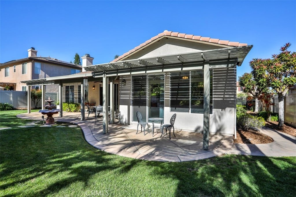 ***SEE OUR 360 Degree Virtual Tour***Nestled within one of South Corona’s most desirable estate home communities, this beautifully maintained single-story residence offers timeless elegance and modern comfort. Built in 2000, the home welcomes you with charming curb appeal, featuring professional landscaping, accent lighting, and a split three-car garage with both a two-car and a single-car bay. A lovely front porch sets a warm and inviting tone as you step through the front door. Inside, a gracious foyer opens to an adaptable office or guest bedroom to the left, and an elegant formal living and dining area to the right — ideal for entertaining or quiet gatherings. The heart of the home is the upgraded kitchen, showcasing gleaming granite covered countertops, freshly refinished cabinetry, a spacious island with seating and a sunny breakfast nook which is adjoined by the sprawling Family/Great room with cozy Fireplace and custom built in Cabinetry and its important to note that there is brand new carpet and padding throughout the home. This massive area, segues conveniently into the rear yard. The private wing of the home features three additional bedrooms, including a serene primary suite. The master retreat offers a walk-in closet and a luxurious en-suite bath complete with a dual-sink vanity, restored cabinetry, a make-up counter, a soaking tub, and a separate walk-in shower. A sliding glass door provides direct access to the covered patio, creating a seamless indoor-outdoor flow. The backyard is an entertainer’s dream — an expansive covered patio stretches along the back of the home, complemented by a custom seating area with a built-in firepit, perfect for relaxed evenings under the stars. The lush, professionally designed landscape blends mature palm trees with fruit-bearing varieties, adding beauty and shade throughout the seasons. Perfectly positioned near top-rated schools, premier shopping and dining, and with convenient freeway access (yet far enough to enjoy peace and quiet), this home combines luxury, comfort, and location in one exceptional package.