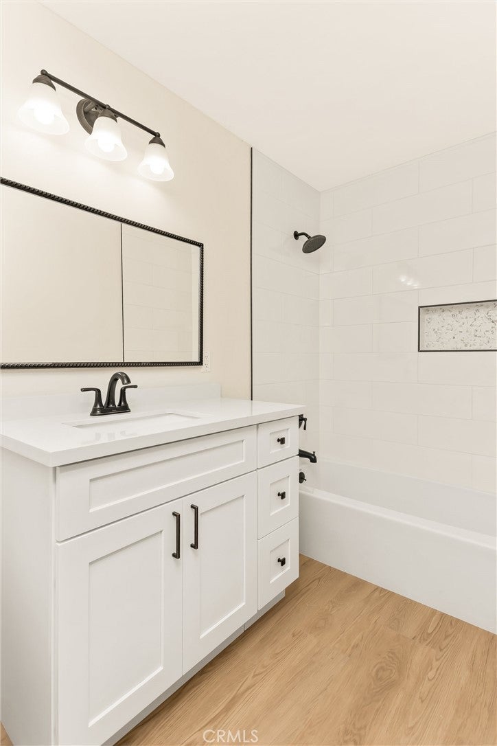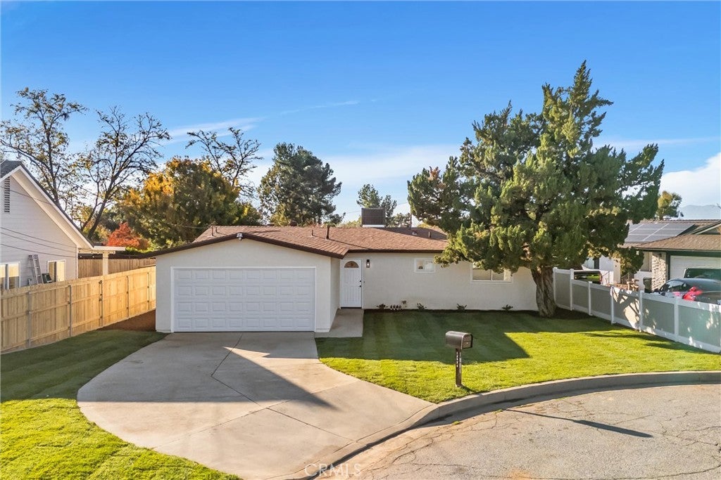 Tucked away at the end of a cul-de-sac and completely updated from top to bottom, this stunning 3-bedroom, 2-bath home blends modern upgrades with timeless style and sits on a generous lot with a large rear yard that’s a true blank canvas—perfect for creating your ideal outdoor retreat. Step into a welcoming and inviting family room that flows seamlessly into the dining area and kitchen, creating a comfortable and functional living space for everyday living and entertaining. The kitchen has been fully reimagined with brand-new white soft-close cabinetry, sleek white quartz countertops, and all-new stainless steel appliances, including a gas range, dishwasher, and microwave. A farmhouse sink, generous pantry, and a convenient breakfast nook overlooking the backyard complete this stylish and practical space. Throughout the home, you’ll find new interior and exterior paint, waterproof vinyl plank flooring, new baseboards, new interior doors, and new oil-rubbed bronze hardware. Major system upgrades provide peace of mind and include a new roof, new garage door, and a brand-new A/C system with all-new ductwork for year-round comfort. The home offers two comfortable secondary bedrooms, both with mirrored closet doors that share a fully updated hall bath with a quartz-topped vanity, new toilet, and a crisp white tiled tub/shower combo. The primary suite serves as a private retreat featuring a beautifully upgraded en-suite bath with a new vanity and a brand-new tiled walk-in shower. Step outside to a spacious backyard with a new pergola patio and endless potential—a true blank slate ready for a pool, play area, garden, or custom outdoor living space. The attached two-car garage includes laundry hookups and direct home access for convenience. Conveniently located near schools, shopping, parks, and freeway access, this move-in ready home offers modern comfort, flexible outdoor space, and everyday convenience—all in one beautiful package!