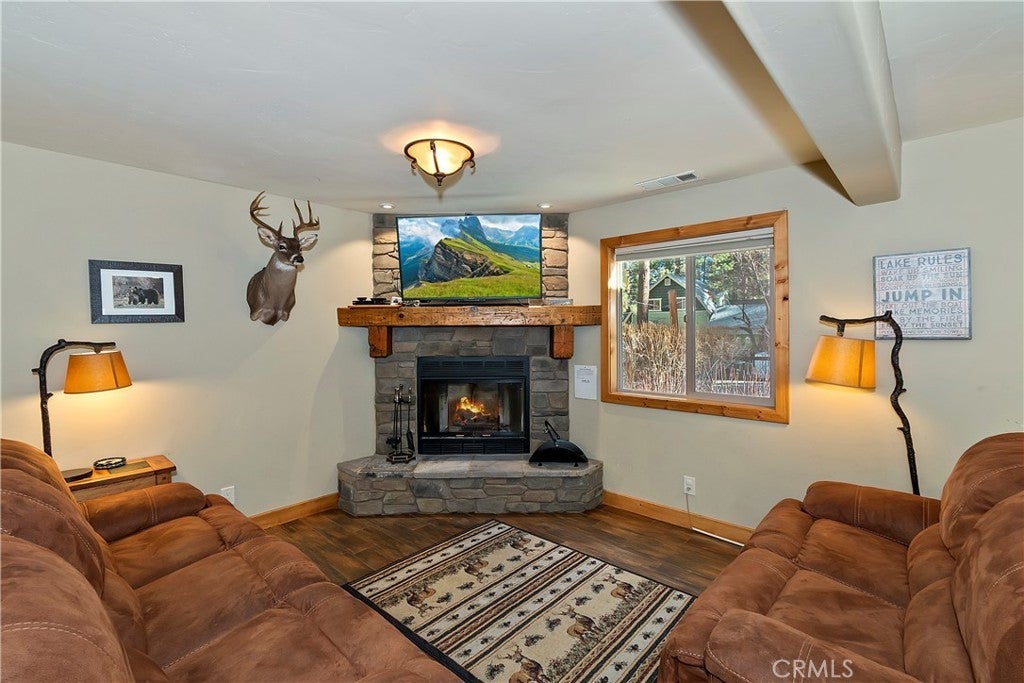 Welcome to your haven in this fully reimagined and rebuilt dream home off the popular Moonridge Corridor. Enjoy the many craftsmanship choices such as the chinking with hand beveled wood on the exterior and the alder wood cabinets, doors, and baseboards inside. The fully furnished house boasts a first floor bedroom and bath and upstairs, another three bedrooms including a room with Queen and Full bunkbeds trimmed in barn wood. Entertain outdoors barbequing on the large Tec deck, playing shuffleboard, or sitting around the gas firepit watching the night sky and soaking in the 8 seat hot tub. Landscaped, hardscaped, and perfectly maintained. Turnkey. The cement driveway is flat, no worries about driving up and down a hill in the snow. Minutes to the ski slopes, Alpine Zoo, Moonridge coffee and retail shops. The 8th bed and 3rd bathroom is in the separate 394 square feet living quarters with fireplace, fridge and microwave above the garage, both permitted in 2018.