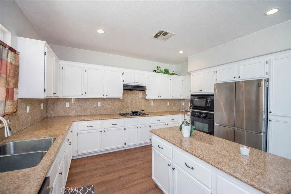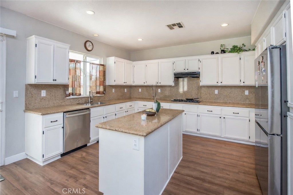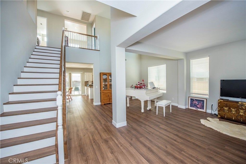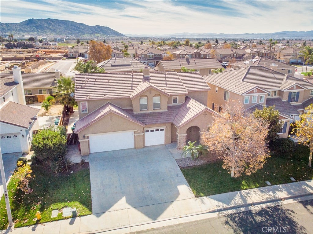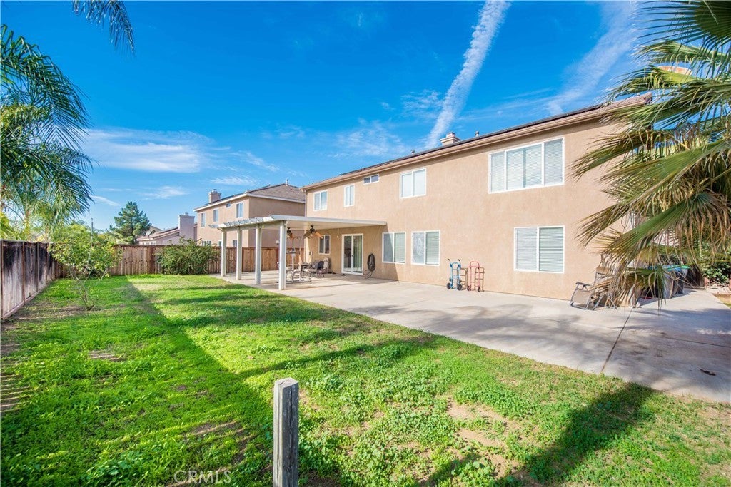 Welcome to 26599 Opal Street, a spacious and well-appointed 4-bedroom, 3-bath home with one bedroom and full bathroom downstairs. This home features an open floor plan ideal for comfortable living and entertaining, with a large kitchen that opens seamlessly to the living area, creating a bright and inviting space. A versatile loft provides the option for a 5th bedroom, home office, or additional living space. The primary suite offers a beautifully remodeled master bathroom and an expansive walk-in closet. Luxury wood-look laminate vinyl tile flooring enhances the main living areas, combining style and durability. Additional highlights include a three-car garage and a large backyard complete with an Alumawood patio cover, perfect for outdoor entertaining and year-round enjoyment. Situated near parks, schools, shopping, dining, and major commuter routes, this home offers both convenience and a strong sense of community, making it an excellent place to call home. It is nestled in the Mohogany Fields community, close to Kaiser Permanente Medical Center, Riverside Health University, Moreno Valley College and the Stoneridge Shopping Center. SOLAR LEASE is $186 monthly with Freedom/Mosaic Solar
