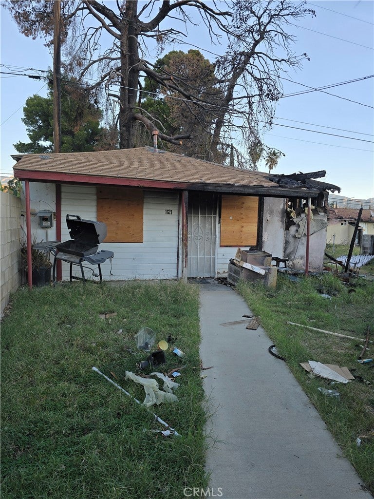 This duplex fixer offers strong upside potential. The front unit features 3 bedrooms and 1.5 bathroom, while the rear unit offers 2 bedrooms and 1 bathroom. The back unit has suffered severe fire damage, and the front unit sustained fire damage to the rear bedroom and patio. The property is being sold strictly as-is, with buyers to verify all permits, square footage, and condition of each unit to their satisfaction. Exterior highlights include alley access, a large driveway, front yard, and spacious backyard, offering flexibility for future improvements or redevelopment. Ideal for those seeking a value-add project, renovation opportunity, or redevelopment potential. Cash Only.