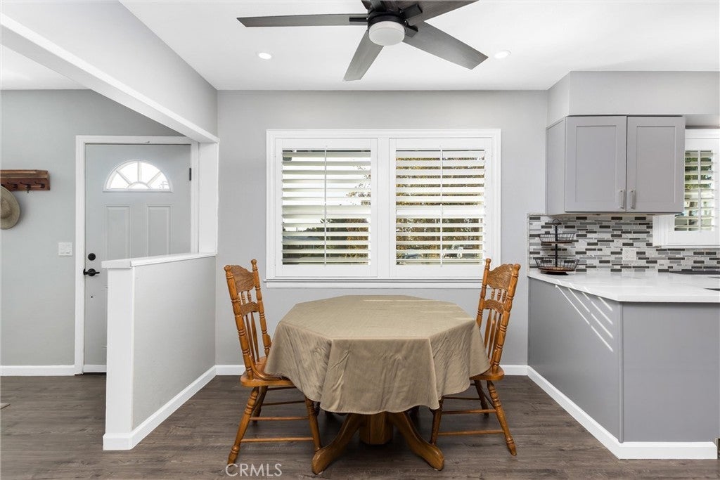 Beautiful Upper Yucaipa Home! This three-bedroom, two-bath residence is fully upgraded and move-in ready. Features include a new roof, dual-pane windows, plantation shutters, laminate flooring throughout, recessed lighting, a whole house fan, and new central heating and air. The remodeled kitchen boasts new soft-close cabinets and stainless steel appliances, quartz countertops and beautiful backsplash. Both bathrooms have been upgraded, featuring a beautiful tile walk-in shower with glass door in the primary bath and a tub/shower combo in the guest bath including new vanity. Ceiling fans are installed in all bedrooms for added comfort. Enjoy a nice-sized backyard with a sprinkler system in both front and back, room for a pool, potential RV parking, stunning mountain views, and a quiet street setting. A nice sunroom provides extra living space, perfect for relaxing. Additional highlights include an altered two-car garage with approximately 14½-foot depth, giving room for the third bedroom. No HOA and no Mello-Roos. Priced at $509,900.