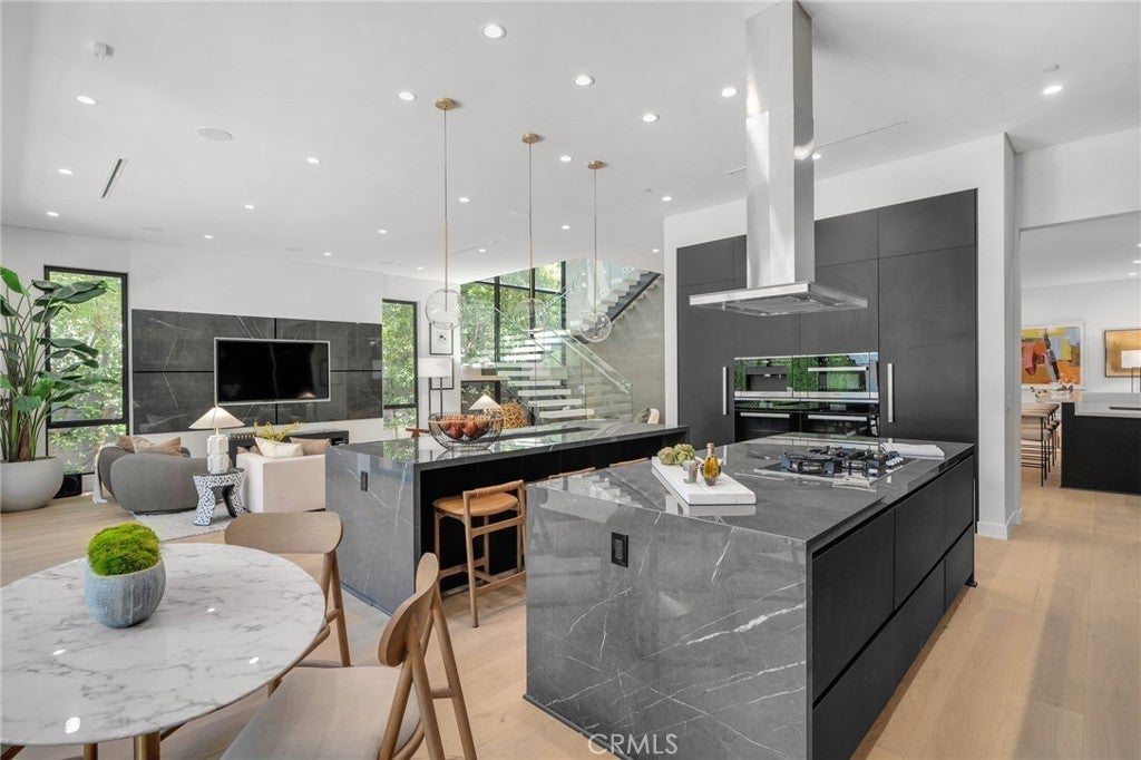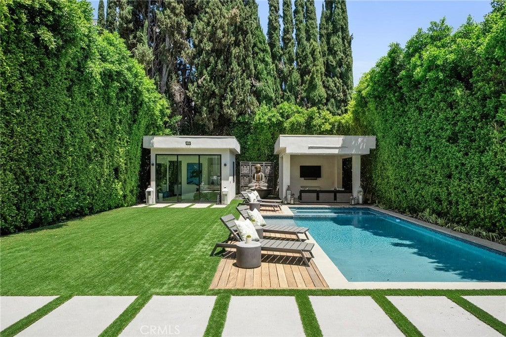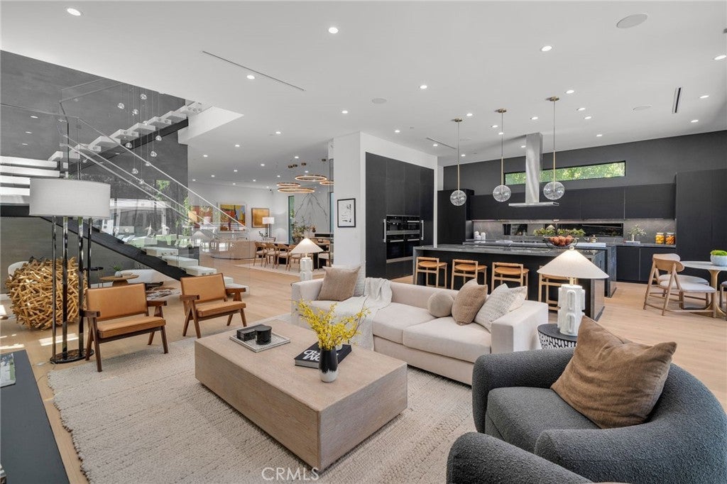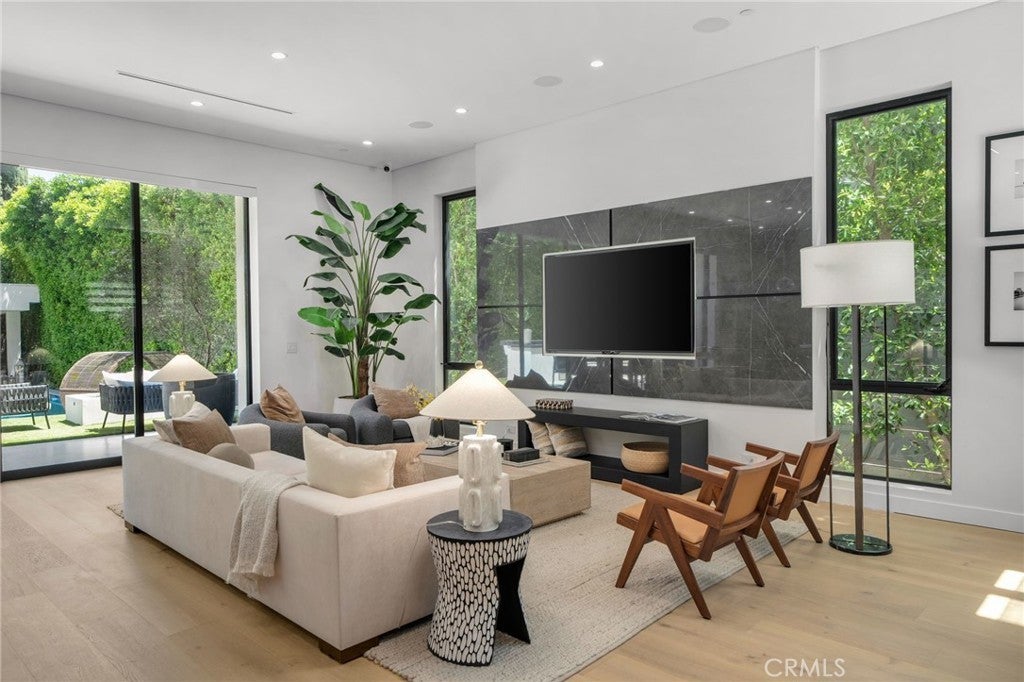 This recently refreshed Sherman Oaks home balances clean, modern design with spaces that feel comfortable and livable. Wide-plank white-oak floors and porcelain-wrapped fireplaces give the interiors a quiet sense of cohesion, while dual kitchen islands and integrated home technology are well suited for a variety of uses and gatherings. Large glass pocket doors open to a private backyard setting with a heated zero-edge pool and spa, firepit, cabana lounge, and a flexible bonus room suited for a gym, studio, or creative workspace. The primary suite upstairs is intentionally set apart, featuring a private terrace, a well-designed walk-in closet, and a spa-inspired bath finished in large-format porcelain. Additional ensuite bedrooms offer privacy and comfort throughout the home. A tiered home theater, integrated automation, and an EV-ready garage complete the residence. Tucked into a quiet enclave just minutes from Ventura Boulevard’s premier shopping, dining, and services, this residence offers a thoughtful mix of design, function, and location—well suited for those seeking a polished, move-in-ready property with room to evolve over time.