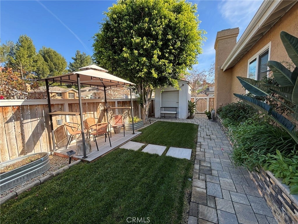 This beautifully maintained Sierra Del Oro home is positioned on a desirable corner lot, offering both privacy and scenic views. The property boasts a range of thoughtful upgrades and stylish finishes throughout. The home features elegant wood flooring, plantation shutters, and recessed lighting, contributing to a warm and inviting atmosphere. The family room is enhanced by a cozy fireplace, perfect for relaxing evenings at home. The kitchen is updated with newer cabinets, luxurious marble countertops, and modern stainless steel appliances. The primary suite is a comfortable retreat, highlighted by a vaulted ceiling and a sliding door that opens directly onto the patio. Both bathrooms in the home have been tastefully updated, featuring walk-in showers and newer vanities. The additional bedrooms are all spacious, ensuring ample room for family or guests. The laundry room is equipped with built-in cabinets and comes complete with a washer and dryer for added convenience. The private backyard offers a view of the Sierra Del Oro neighborhood. It includes a covered patio area, an outdoor fireplace and a shed, providing great space for entertaining or relaxing outdoors.