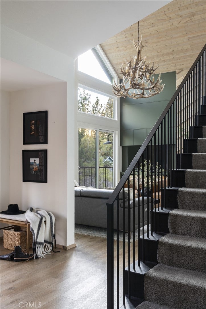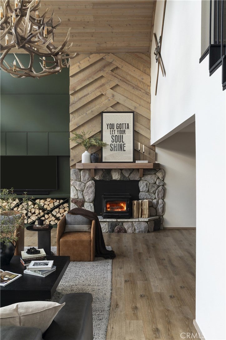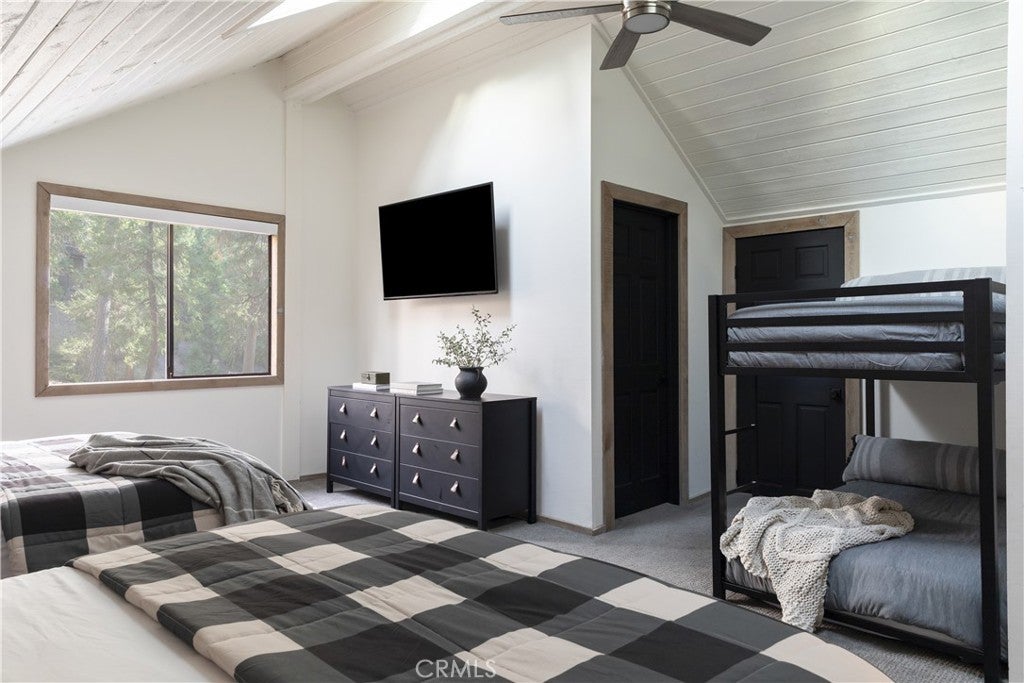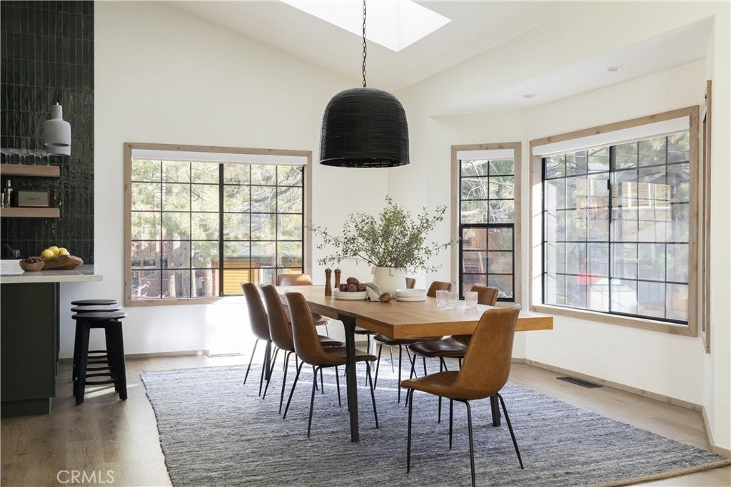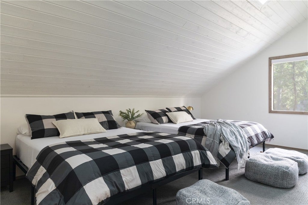 The cabin you’ve been waiting for, welcome to Soulshine. Tucked into Big Bear’s highly sought after Fox Farm area, this fully renovated mountain retreat showcases high-end design, quality finishes, and timeless cabin appeal. Designed for year-round enjoyment, the home offers an ideal balance of comfort, style, and location in one of Big Bear’s most coveted areas. Inside, the home feels warm and inviting from the moment you enter. The main living space features a light-filled living room with vaulted wood ceilings and a stone fireplace, creating a cozy place to relax after a day on the slopes or at the lake. Large windows bring in natural light, connect the space to the surrounding trees, and offer views of the ski slopes in the distance, making the living room the heart of the home. The kitchen is fully equipped with high-end finishes, a statement backsplash, moody cabinetry, and floating wood shelving. The adjacent dining area is ideal for entertaining and everyday living. The main level offers three bedrooms, including a primary suite with a soaking tub and two additional guest bedrooms with a full bath. Upstairs is an additional sleeping area with bunk beds, perfect for kids or guests. Outdoor living is a true highlight. Step outside to an open deck ideal for entertaining, grilling, or stargazing, and enjoy the outdoor jacuzzi in the backyard. The fully fenced yard provides space for kids, pets, and relaxed outdoor living. A large concrete driveway provides parking for up to six cars and a two-car garage, currently used as a game room. The property also features additional build-up space with the potential to be converted into livable square footage, adding future value and flexibility. Centrally located just minutes to Snow Summit, The Village, and Big Bear Lake, Soulshine has been operated as a successful short-term rental and offers versatility as a full-time residence, weekend getaway, or investment property.
