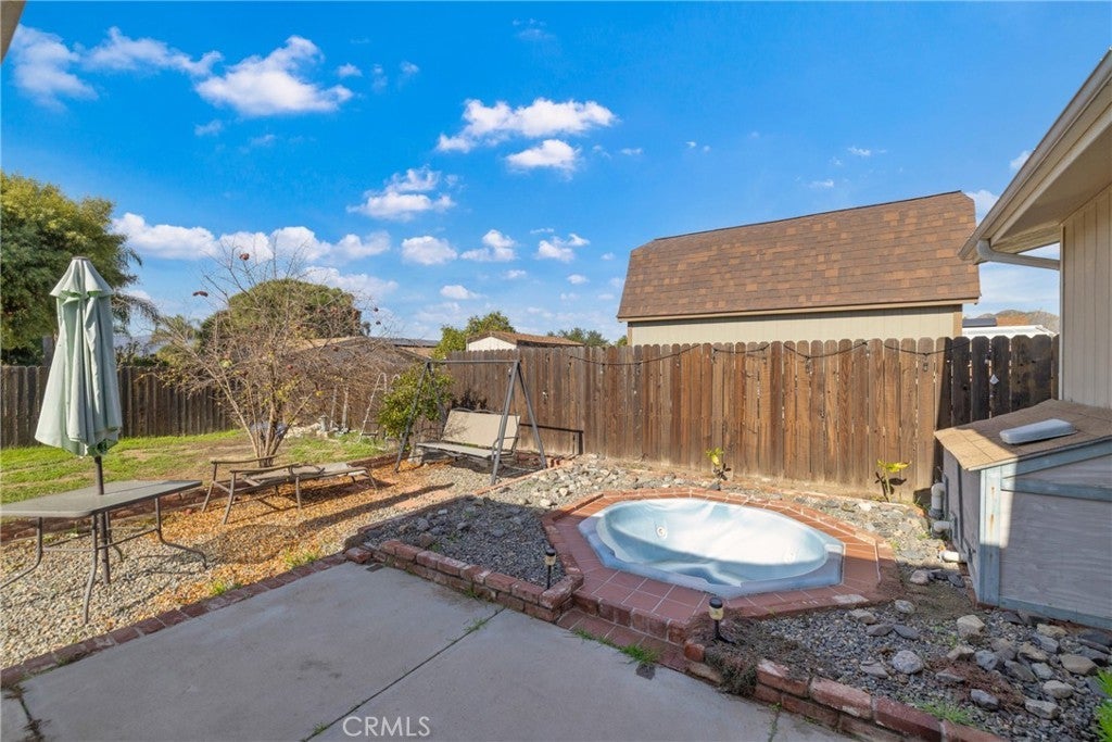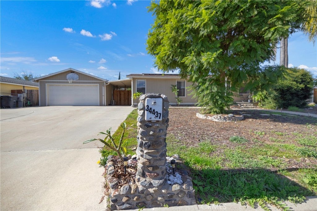 Tucked away at the end of a quiet paved cul de sac, this beautifully remodeled home offers the perfect blend of privacy, space, and So Cal outdoor living on approximately .23 acres, with no HOA and low taxes. The home features 3 bedrooms and 3 updated bathrooms, highlighted by vaulted ceilings, updated fixtures, and a warm, inviting living room with a cozy fireplace and barn door separating the main living area from the bedroom wing. The remodeled kitchen showcases granite countertops, custom tile backsplash, stainless steel appliances, and opens to main living areas with hardwood style flooring, while the bedrooms feature carpet. Additional upgrades include a new roof, solar panel system, indoor laundry room, and a long, extra wide driveway leading to a detached two car garage, plus exterior storage and a mini split A/C system and the third bathroom in the garage, ideal for guests, a workshop, or entertaining. Step outside to a fully fenced backyard designed for relaxation and entertaining, complete with a large covered patio, built in brick BBQ island, brick seating area, brick fire pit, inground hot tub, and a dedicated dog run. The expansive yard offers room for animals or chickens and is enhanced by a variety of mature fruit trees, including pomegranate, peach, plum, guava, mandarin, lime, and lemon. Located in the heart of Wildomar, this home provides a relaxed rural feel with convenient access to shopping, dining, freeway connections, and outdoor recreation near Lake Elsinore, Santa Rosa Plateau, local hiking and equestrian trails, and community parks, making it an ideal opportunity for buyers searching for a large lot home, cul de sac property, remodeled home with garage, RV style driveway space, or outdoor entertaining.