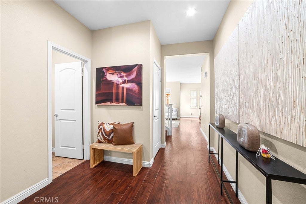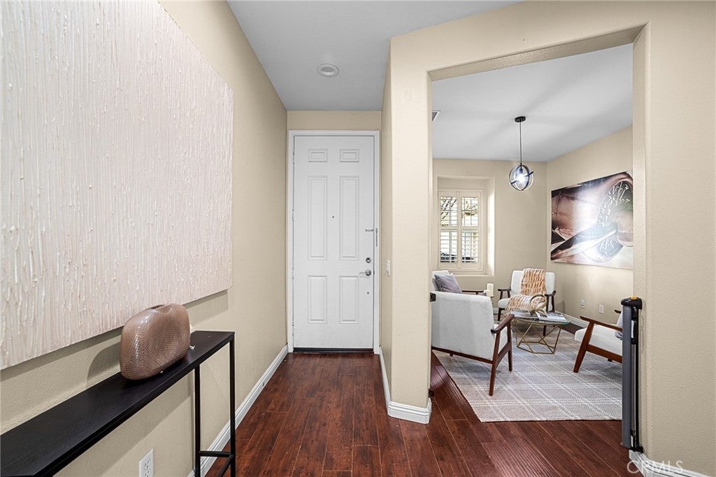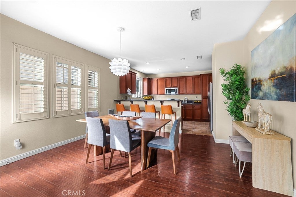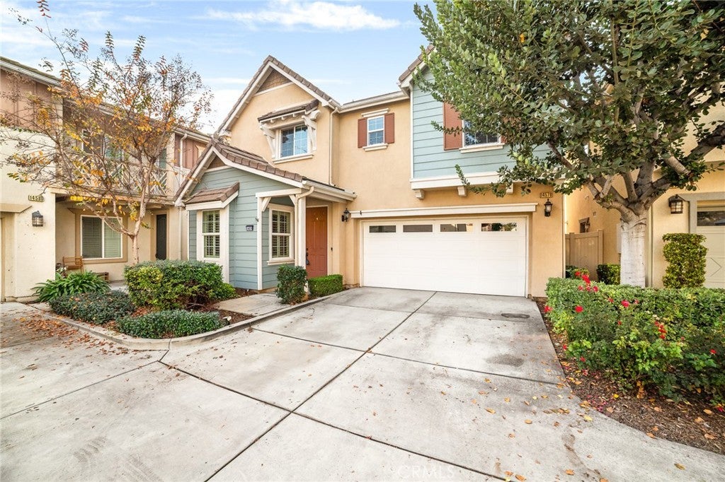Welcome to Berkley Square! This beautiful 4-bedroom, 2.5-bath home offering 2,092 sq ft of living space. The main level features a formal living room, half bath, and a spacious family room with fireplace that opens to a large kitchen with peninsula seating, perfect for everyday living and entertaining with door leading to a private backyard, ideal for outdoor dining, entertaining, or relaxing. The kitchen offers direct access to the garage for added convenience. The home is filled with abundant natural light thanks to numerous windows and features laminate flooring throughout. Upstairs, you’ll find four bedrooms, two full bathrooms, and a convenient laundry room. The expansive primary suite includes a spa-like bathroom with a soaking tub, separate shower, and two walk-in closets. Enjoy a prime Chino location with easy access to major freeways, making commuting to Orange County, Riverside, and Los Angeles convenient. This is a desirable community where residents also enjoy resort-style amenities through the Berkley Square at College Park HOA, including pool and spa, clubhouse, gym, parks, picnic areas, playgrounds, and more. This home offers the perfect blend of space, comfort, indoor-outdoor living, and community.