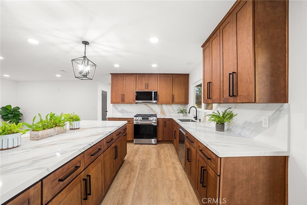 Peaceful, quiet, and serene, this beautifully reimagined single-story residence is perched on a hillside in the sought-after Devore Heights area, offering sweeping panoramic views of the mountains and valley below. Elevated both in setting and design, the home delivers a refined sense of privacy and calm while showcasing thoughtful, high-quality upgrades throughout. Extensively renovated, improvements include a new roof, fresh interior and exterior paint, updated flooring, dual-pane windows, and new doors throughout. The open-concept layout is anchored by a stunning chef’s kitchen featuring custom cabinetry and an oversized 10-foot island, creating a sophisticated yet inviting space ideal for both everyday living and entertaining. LED lighting enhances the home’s clean lines and modern aesthetic. Both bathrooms have been tastefully redesigned with custom tile work, offering a spa-like, cohesive finish that elevates the overall design. From the rear of the home, expansive hillside and valley views provide a striking and tranquil backdrop. Outdoor living has been equally refreshed with a newly redone patio cover, creating an ideal setting to relax, entertain, or simply take in the serene surroundings. Situated on a generous lot with ample usable land, the property offers exceptional flexibility — including RV or trailer parking — along with room to expand, add a shop, or explore the potential for an ADU. A rare combination of elevated design, modern comfort, and breathtaking natural surroundings, this Devore Heights home offers a truly refined living experience.
