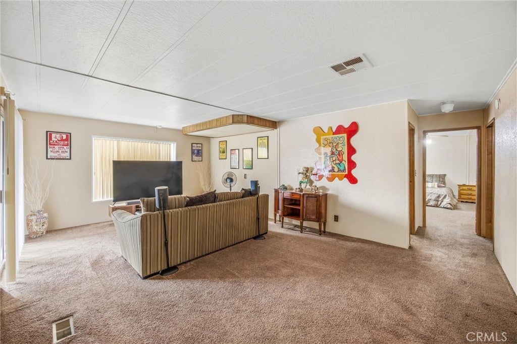 AMAZING UPGRADES to this H-U-G-E Triple Wide home, featuring a NEW ROOF in 2022, Home Re-Leveled Sept 2025, NEW Flooring, Bathroom lights come on when you walk in (so cool!!!), Xtra King Size Primary Bedroom with a separated walk-in Dressing Area with Vanity AND a Walk-In Closet. The Primary bathroom screams LUXURY !!! Enter through the Wide HANDICAPPED Bathroom Door, A "Roll in shower" OR a shower large enough for TWO!! Double sinks, special lighting, built-in storage for linens, towels, etc. One of the top of the line Golden West Homes, featured a built-in China hutch, FIREPLACE, Vaulted & Beamed ceilings in the Living Room, PLUS the home was RELEVELED SEPT 2025! Lovely workable kitchen in a semi circular design with built-in dishwasher, disposal, built-in oven with ample room on either side of the cooktop for the "Chef" in the family who loves to spread out over a two-tiered Breakfast bar. So many wonderful features in this IMMACULATE & SPACIOUS HOME! Put this one on you list as a "MUST SEE". (Ser.# GW1CALSB5056A/B/C) Space rent only $1381.47/mo, subject to verification with Park Management. Financing available. Professional pictures will be taken soon!