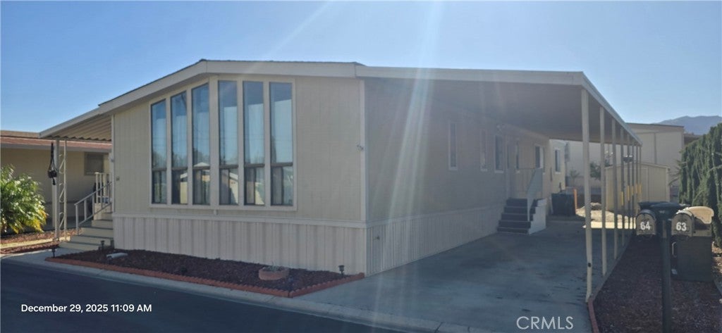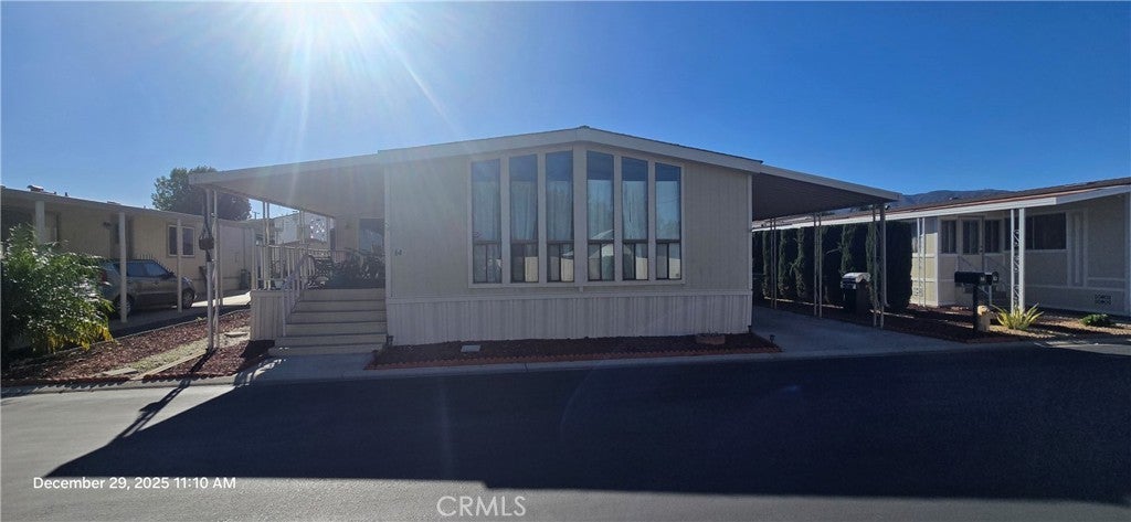 (Unit 64) Welcome to Countrywood Estates! Great opportunity here in this triple wide, 1810 square foot manufactured home in Corona! On the outside the skirting, carport, and front porch railing was recently painted, and new front steps were added! Inside features an open floor plan including living room with laminate flooring, fireplace & wetbar! Your step saving kitchen with lots of cabinet & counter space! 4 Room including: 2 spacious bedrooms, 2 bathrooms, and 2 additional rooms with no closets that could be used as an offices or guest rooms! Other features include indoor laundry, central air/heat, storage shed, and a lengthy carport with plenty of room for 2+ cars! Countrywood Estates is a gated community offering an in-ground pool & spa, and clubhouse with billiards room, lounge areas, library, and kitchen! Convenient to freeways (91,15,71), favorite restaurants, the MetroLink, Toll Roads, and lots of shopping to choose from including the upcoming redevelopment area "THE HUB" in downtown Corona! Best deal around!