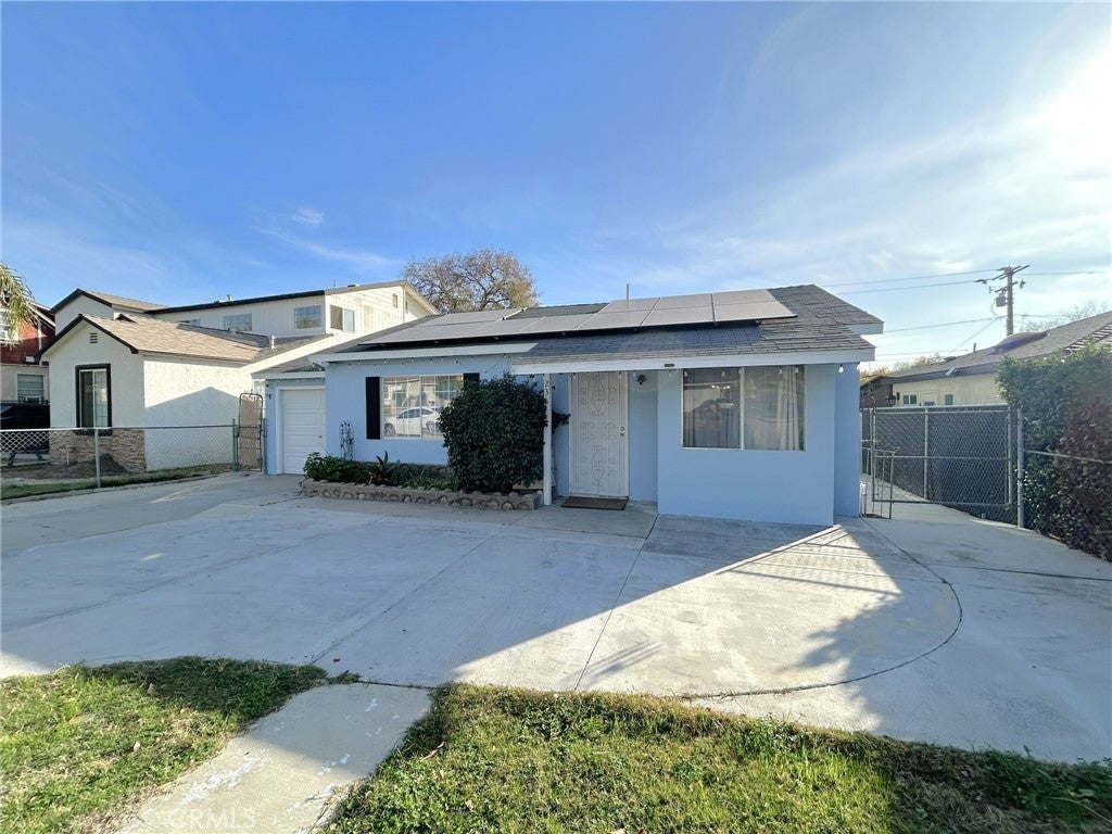 Single-Story 3-Bedroom Home Available in North San Bernardino! Carpet and Laminate Flooring throughout the Living Room and 3 Bedrooms, one of which is a converted garage that can be used as a Bedroom, Office, or Bonus Room. Central AC/Heat and an additional Window AC Unit cool and heat the home. The Kitchen includes Granite Countertops, a Stove/Oven (gas), and a Dishwasher. There are also Washer/Dryer Hookups with the Dryer provided. The Large Fenced Backyard has a Covered Patio and Bins for Storage. Driveway Parking. Tenant Pays All Utilities, and there are Solar Panels--Low to No Electric Bill! Will Consider Small Dogs Only--No Cats Please.