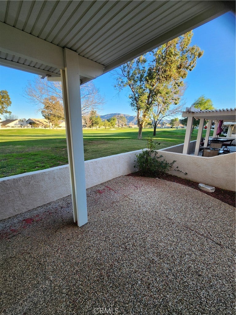 Pour yourself your favorite beverage and set back and enjoy the view from your patio of the 3rd fairway – taking in this beautiful site and enjoy the conversation you might have with your neighbors and friends. When you’re finished relaxing, come and play the 18-hole professional course here at Sun Lakes and partake in the enjoyment of playing on a well maintained and picturesque golf course. If this course seems to be challenging – then play the Executive 18-hole golf course that offers similar breathtaking views and challenges. If golf isn’t your bag – then how about playing tennis on the renovated tennis courts near the South Club house. If tennis isn’t your interest, how about playing pickleball on the renovated pickleball courts near the North Club house. If tennis or pickleball isn’t your cup of tea – try relaxing at the large pool and spas located at the main club house, north club house, or the in-door pool and spa at the South Club house. There’s a saying here at Sun Lakes Country Club – if you’re bored, it’s your fault” because if you have a interest, there's probably a club you can join. Having tried out the different facilities – ranging from golf, tennis, pickleball, bocce ball, weight rooms, hobby rooms, entertainment center, exquisite on-site restaurant and sand wedge sandwich shop, and now you need to relax – ENJOY your new home: 2 bedrooms, Den/bedroom and 2 1/2 bath. This home has plantation shutters, ceiling fans throughout, and white cabinets, new garbage disposal, new water heater. Your entry has a professionally designed courtyard leading to your picturesque back patio area where you can enjoy your morning coffee and golf course views. The back yard has a full-length covered patio with outdoor fan where you can enjoy entertaining your friends and family. Even more exciting, Sun Lakes doesn’t have any Melo Ross as does all new construction in Banning and Beaumont areas!