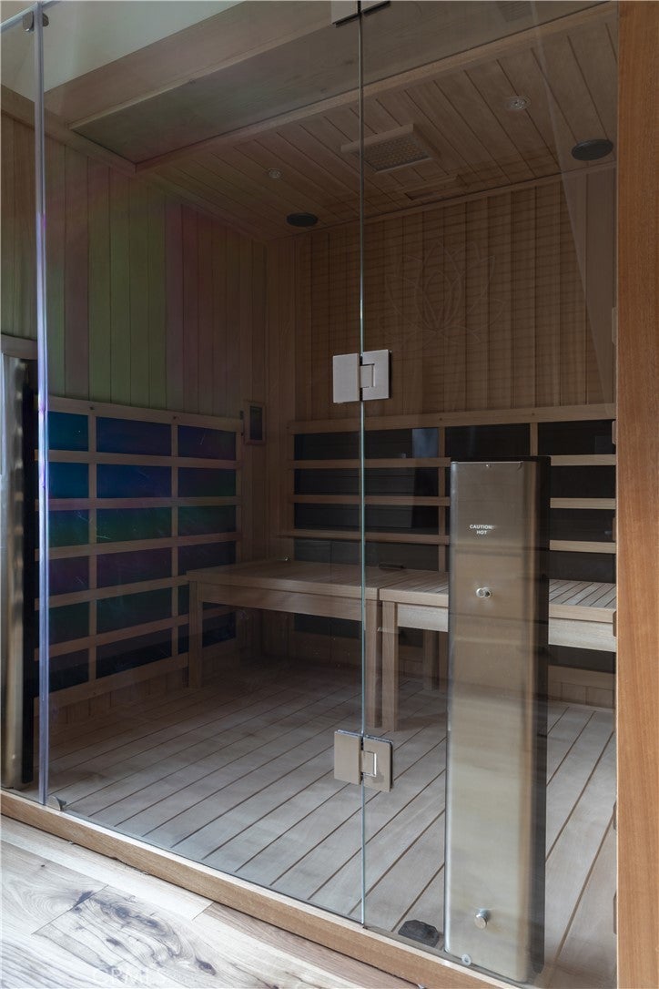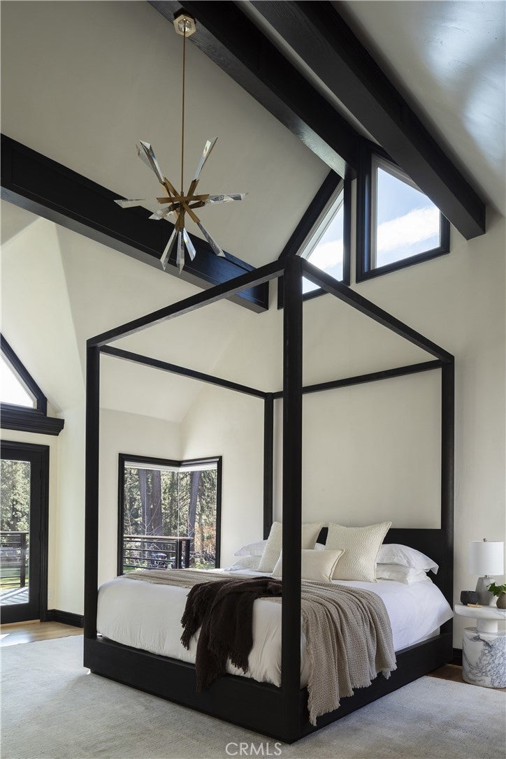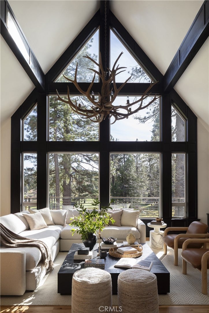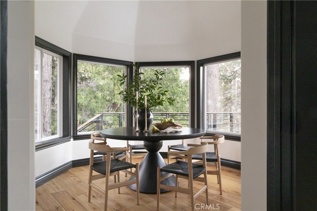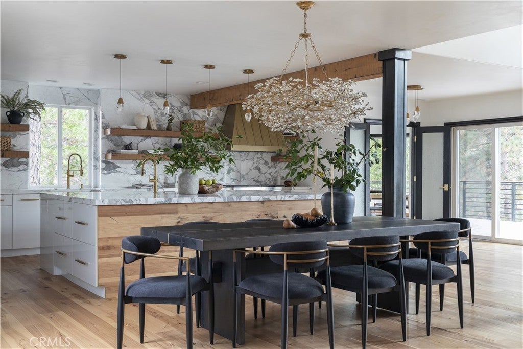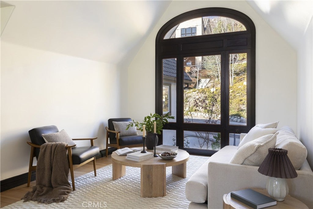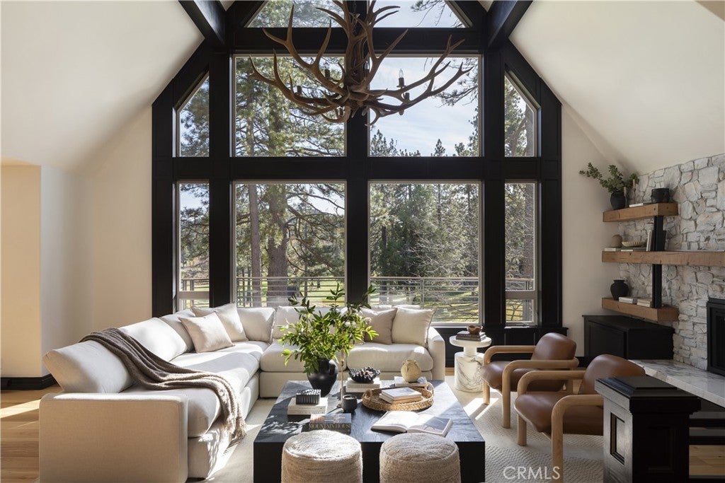 Imagine starting your day surrounded by tall pines, watching golfers play through the fairway below as the mountain wakes up. Located on the 6th green of Lake Arrowhead Country Club, this beautifully renovated home offers true golf course frontage with views stretching across multiple holes and of Grass Valley Lake, creating a front-row seat to one of the most sought-after lifestyles in the mountains.Inside, the home feels warm and welcoming, with vaulted ceilings, large windows framing the golf course, and natural materials throughout. The main living spaces are designed for everyday living and entertaining, centered around a stone fireplace and wall of glass overlooking the fairway. The kitchen and dining areas flow from the living room and feature an oversized marble island, Sub-Zero refrigerator, four Wolf ovens, and a Cove dishwasher. These brands, along with RH, Arhaus, Schoenboch, and Kolher, are the high end finishes that blend functionality and beautiful design that make this space special. Just off the main living area, the main level primary suite offers access to the expanded deck, golf course views, vaulted ceilings, and a stone fireplace. The spa-inspired bathroom features heated floors, a bidet toilet, soaking tub, illuminated opal white granite bathtub wall, multi headed shower with body jets, and walk-in closet. 2 additional full bedroom suites are spread throughout the home for privacy and flexibility. Upstairs features one of those primary suites with a fireplace, 4 piece bathroom, and lofted work or play area. Completing the street level is a wellness space complete with a 2 person Clearlight sauna and yoga studio with ceiling anchors for aerial suspension. The lower level is ideal for entertaining, offering a game and lounge area with stone fireplace, poker nook, and additional bedrooms, including the third ensuite with patio access. Outdoor living truly sets this home apart, with over 1,000 square feet of weatherproof tile deck space overlooking the fairway, plus a lower golf-level patio and new salt water jacuzzi just steps from the course. A two-car garage and separate golf cart garage complete the property, with direct access to a private golf cart path leading straight out to the fairway. With true golf course frontage, lake rights, and close proximity to Lake Arrowhead Village and the lake, this home brings together golf, lake, and mountain living in one setting. Furnishing and brand new 4 person golf cart included with purchase.