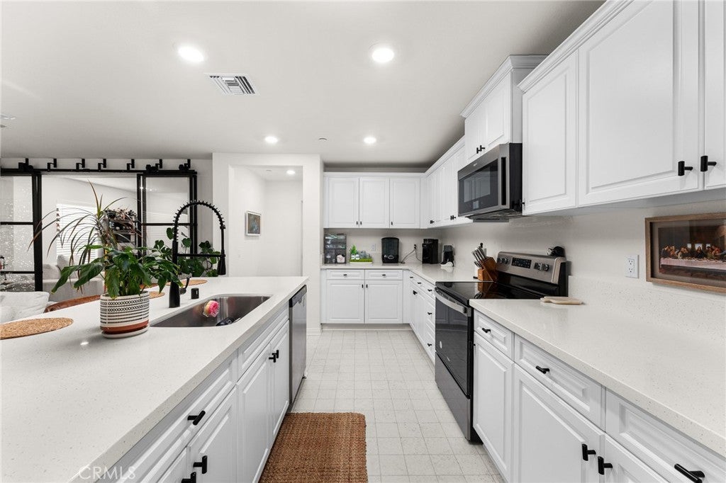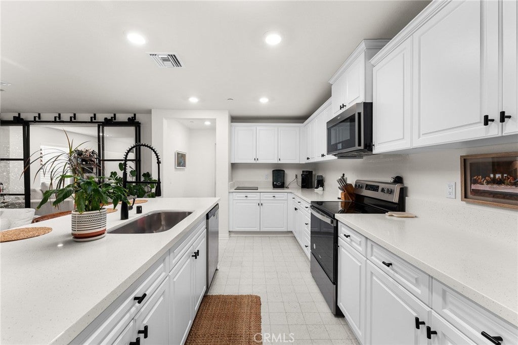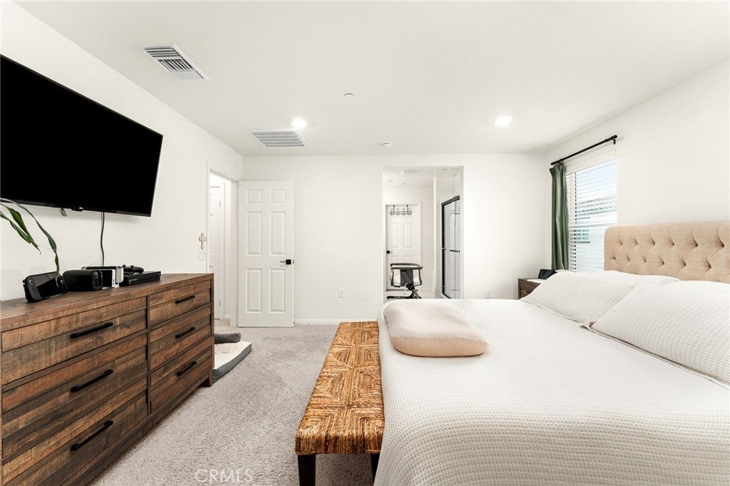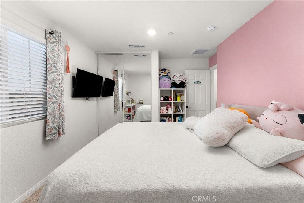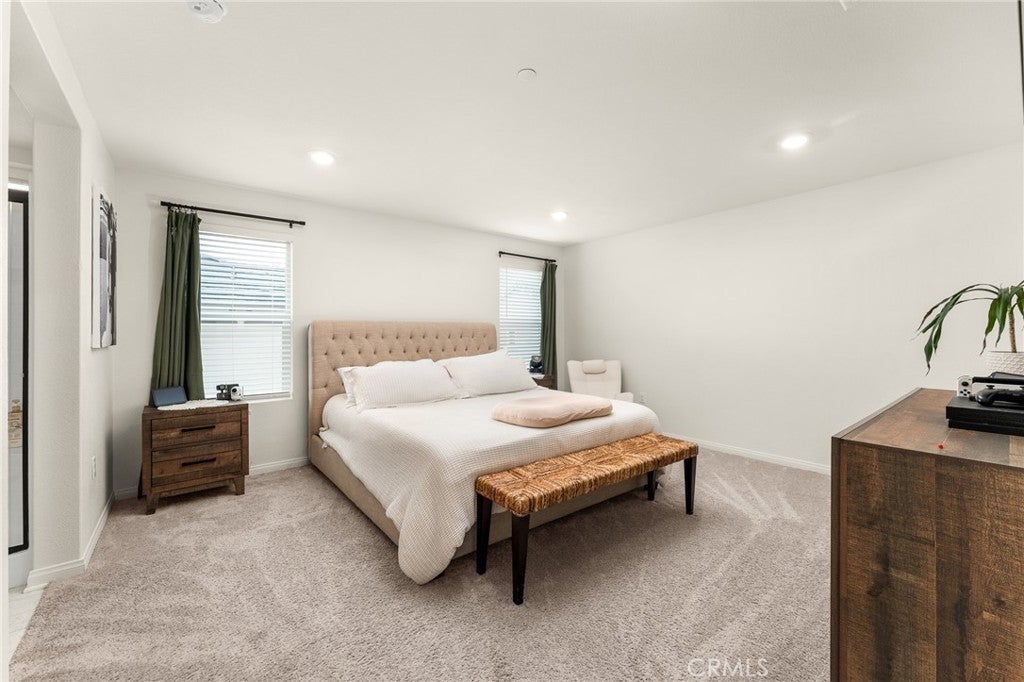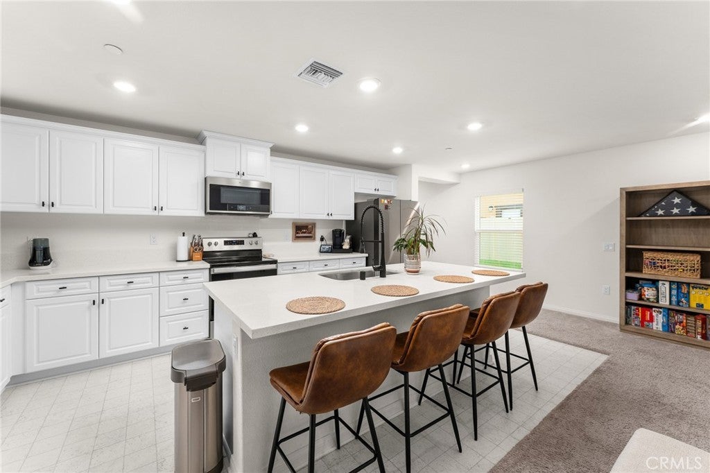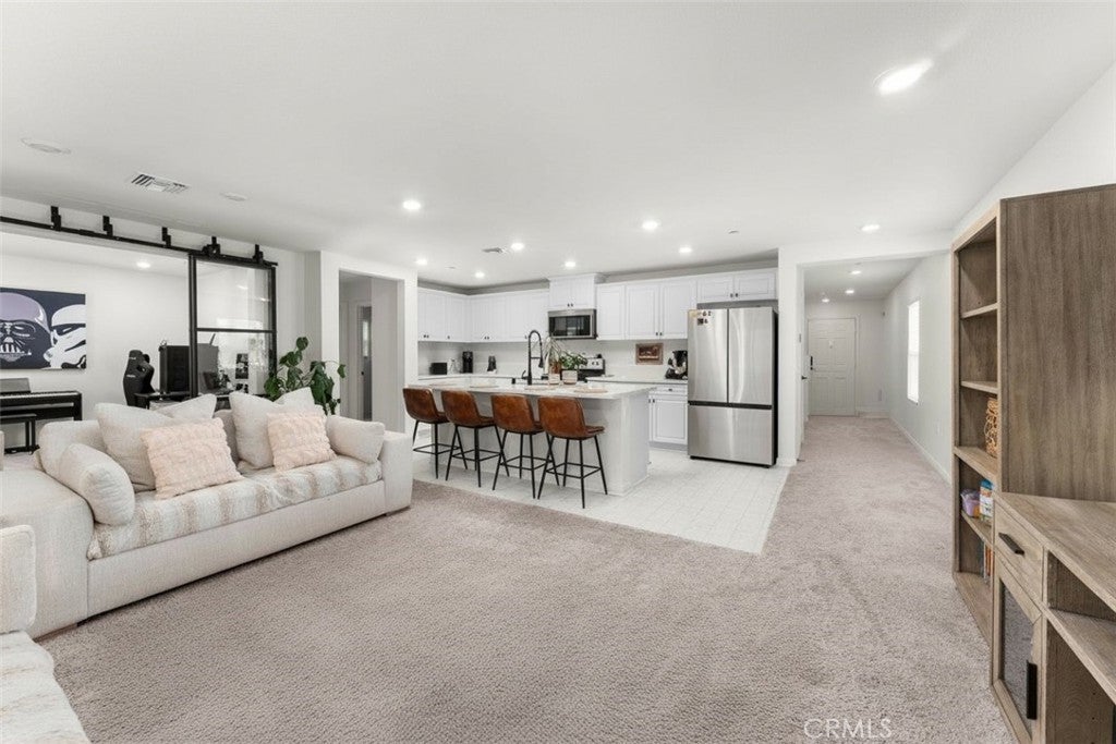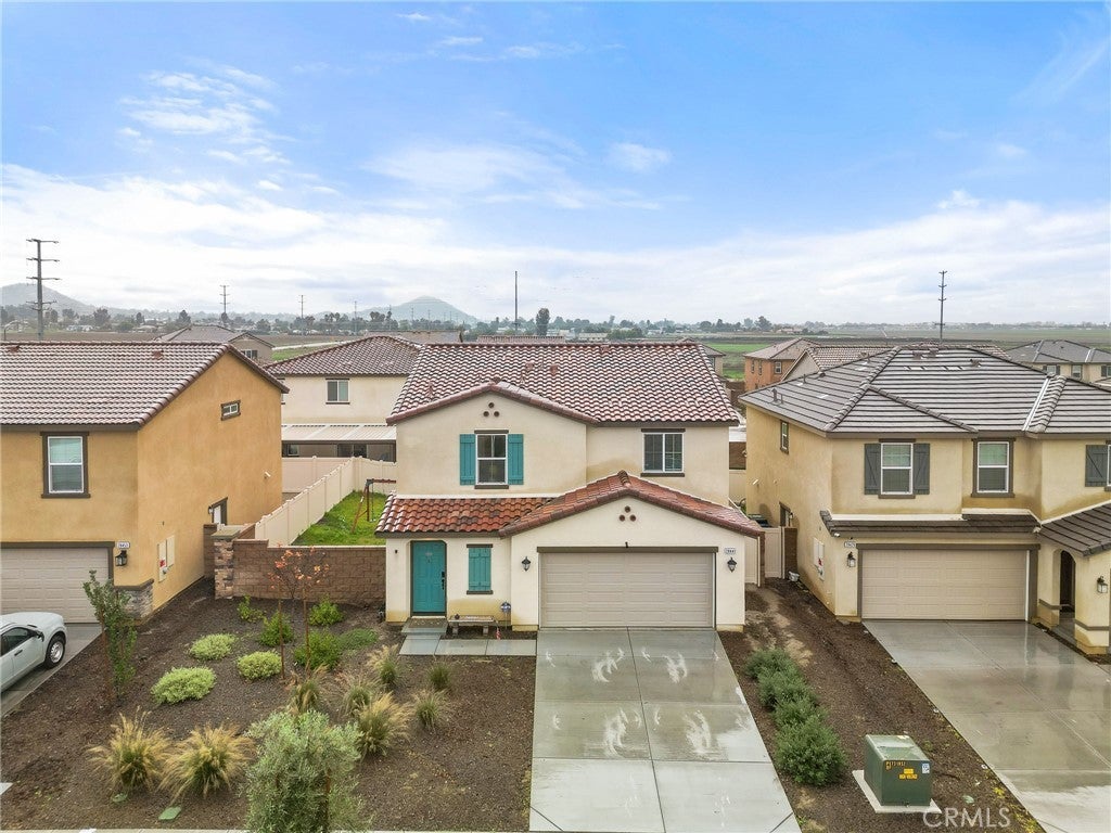 Welcome to this nearly new, energy-efficient home built just one year ago, located in a desirable newer construction community. This spacious 3-bedroom, 2.5-bath single-family home offers 2,145 sq ft of open-concept living and includes a dedicated home office—perfect for remote work or a flex space. The modern white kitchen features a large center island, ample cabinetry, and flows seamlessly into the living and dining areas, creating an ideal layout for entertaining. Additional highlights include an attached 2-car garage, solar energy system for lower utility costs, and a low-maintenance design buyers love. Enjoy a good-sized backyard with space for outdoor entertaining, pets, or future landscaping. Situated near planned community parks, this move-in-ready property offers easy access to shopping, schools, dining, and major commuter routes. If you’re searching for a newer home in Nuevo, CA with solar, open floor plan, and a home office, this property checks all the boxes. Don’t miss this opportunity to own a modern, energy-efficient home in a growing community.