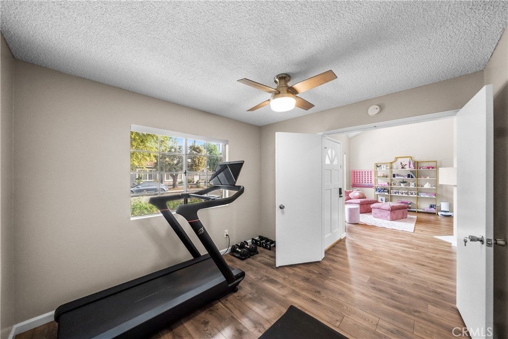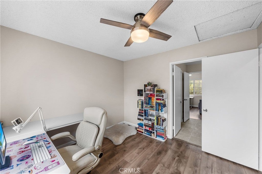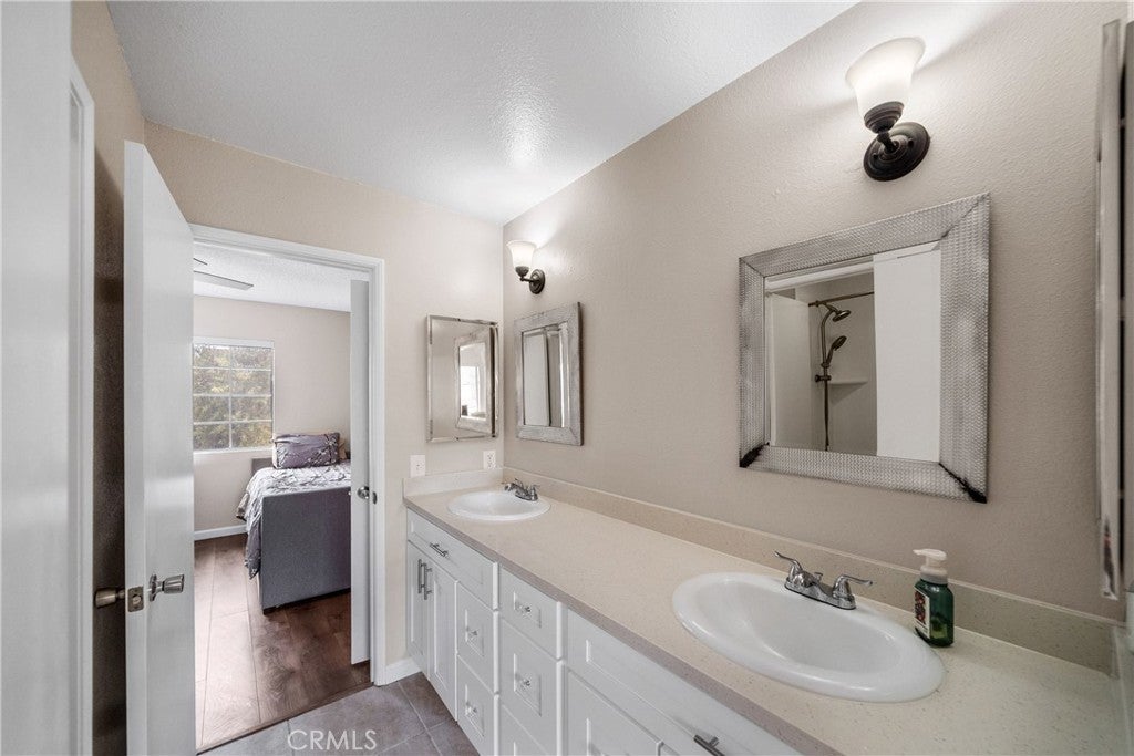 This well-appointed two-story home offers a versatile and functional floor plan in a desirable Ontario neighborhood. Laminate flooring and tile run throughout, creating a clean, cohesive look with low-maintenance appeal. The main level includes a convenient downstairs bedroom and a full bathroom with a newly renovated shower ideal for guests or multigenerational living. Formal living and dining rooms feature dramatic, soaring ceilings that create an impressive sense of space and natural light. The family room with a cozy fireplace opens to the kitchen, where the sink overlooks the private backyard—perfect for everyday living and entertaining. A walk-in pantry provides excellent storage, while direct access from the two-car garage adds daily convenience. The garage also includes a laundry area with plenty of room for additional storage. Upstairs, two additional renovated bathrooms with dual-sink vanities serve the secondary bedrooms, and the open overlook showcases the home’s humongous ceiling height below. The expansive primary suite is a true retreat, offering high ceilings, an oversized ceiling fan, a remodeled en-suite bathroom, and a walk-in closet. Ideally located near new shopping and dining destinations including Ontario Mills, Eastvale Gateway, and New Haven Marketplace, with quick access to schools and major commuter routes. Just minutes from Ontario International Airport, this home combines space, comfort, and exceptional convenience in Ontario.